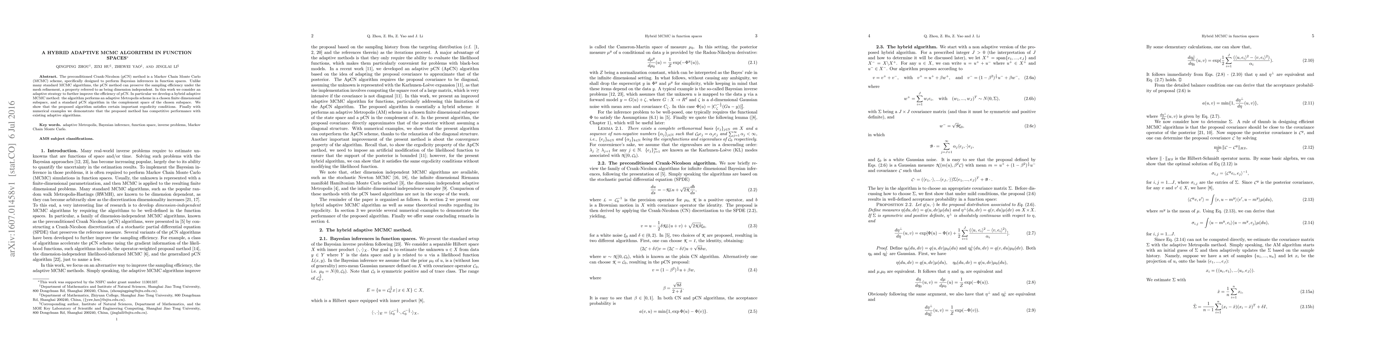 This paper introduces a hybrid adaptive MCMC algorithm combining an adaptive Metropolis scheme in a finite-dimensional subspace with a standard preconditioned Crank-Nicolson method in the complementary space, demonstrating improved efficiency and competitive performance compared to existing adaptive algorithms. The proposed method maintains ergodicity and shows promising results in numerical examples.