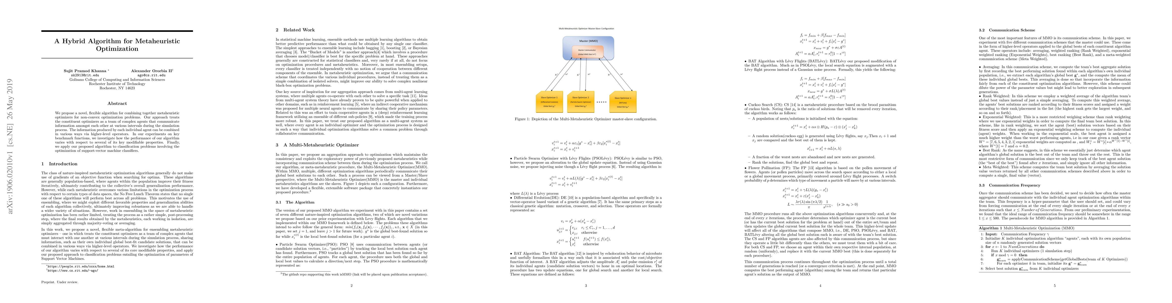 Researchers propose a hybrid algorithm combining metaheuristic optimizers for non-convex optimization problems, exploring how performance varies with key modifiable properties and applying it to classification problems.