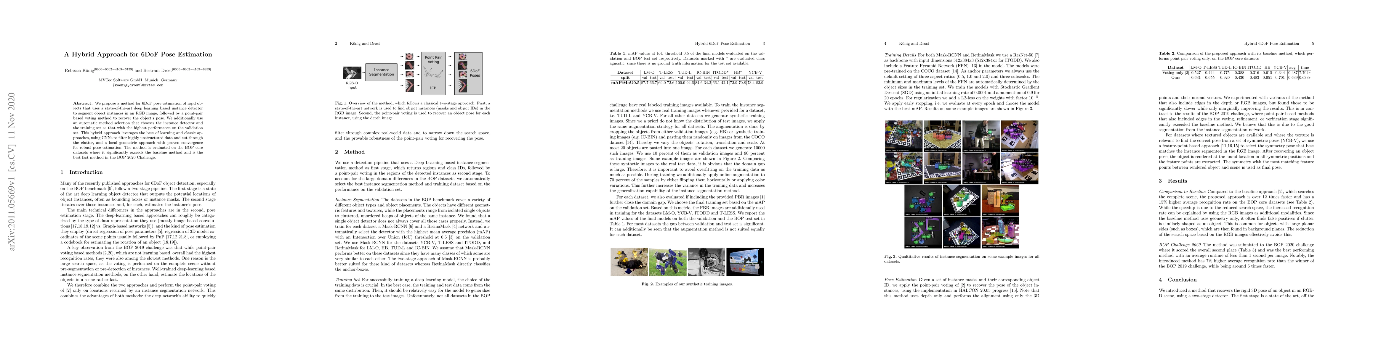 This research proposes a hybrid approach combining deep learning and local geometric methods for 6DoF pose estimation of rigid objects, achieving significant improvements over baseline methods on BOP core datasets.