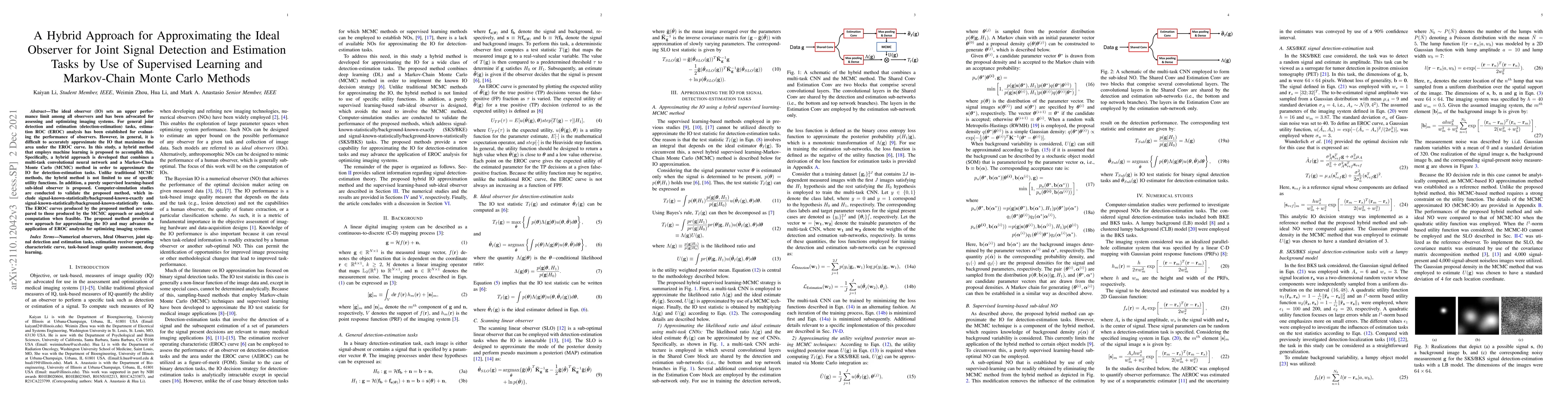 The ideal observer (IO) sets an upper performance limit among all observers and has been advocated for assessing and optimizing imaging systems. For general joint detection and estimation (detection-estimation) tasks, estimation ROC (EROC) analysis has been established for evaluating the performance of observers. However, in general, it is difficult to accurately approximate the IO that maximizes the area under the EROC curve. In this study, a hybrid method that employs machine learning is proposed to accomplish this. Specifically, a hybrid approach is developed that combines a multi-task convolutional neural network and a Markov-Chain Monte Carlo (MCMC) method in order to approximate the IO for detection-estimation tasks. Unlike traditional MCMC methods, the hybrid method is not limited to use of specific utility functions. In addition, a purely supervised learning-based sub-ideal observer is proposed. Computer-simulation studies are conducted to validate the proposed method, which include signal-known-statistically/background-known-exactly and signal-known-statistically/background-known-statistically tasks. The EROC curves produced by the proposed method are compared to those produced by the MCMC approach or analytical computation when feasible. The proposed method provides a new approach for approximating the IO and may advance the application of EROC analysis for optimizing imaging systems.