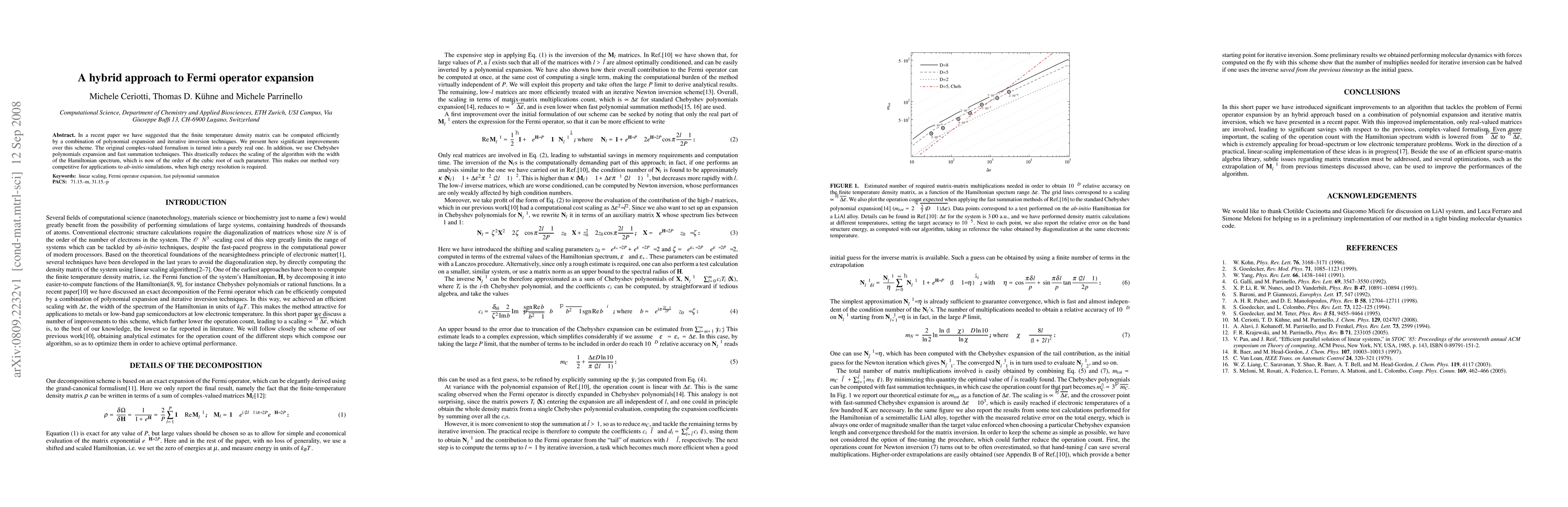 In a recent paper we have suggested that the finite temperature density matrix can be computed efficiently by a combination of polynomial expansion and iterative inversion techniques. We present here significant improvements over this scheme. The original complex-valued formalism is turned into a purely real one. In addition, we use Chebyshev polynomials expansion and fast summation techniques. This drastically reduces the scaling of the algorithm with the width of the Hamiltonian spectrum, which is now of the order of the cubic root of such parameter. This makes our method very competitive for applications to ab-initio simulations, when high energy resolution is required.