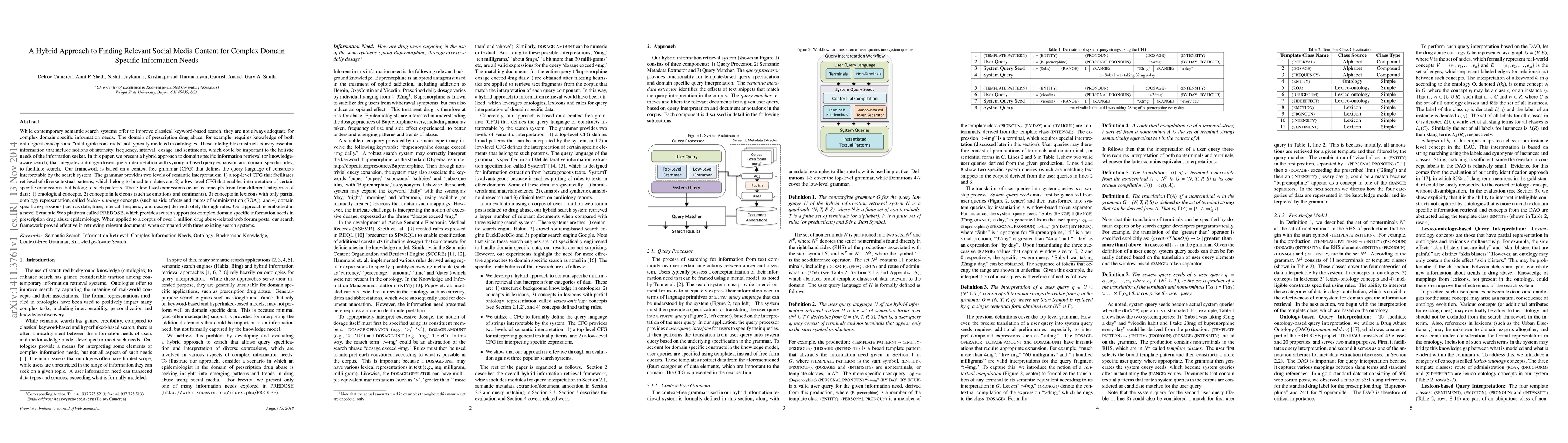 Researchers developed a hybrid approach to search for complex domain-specific information needs on social media, combining ontology-driven query interpretation with synonym-based expansion and custom rules.