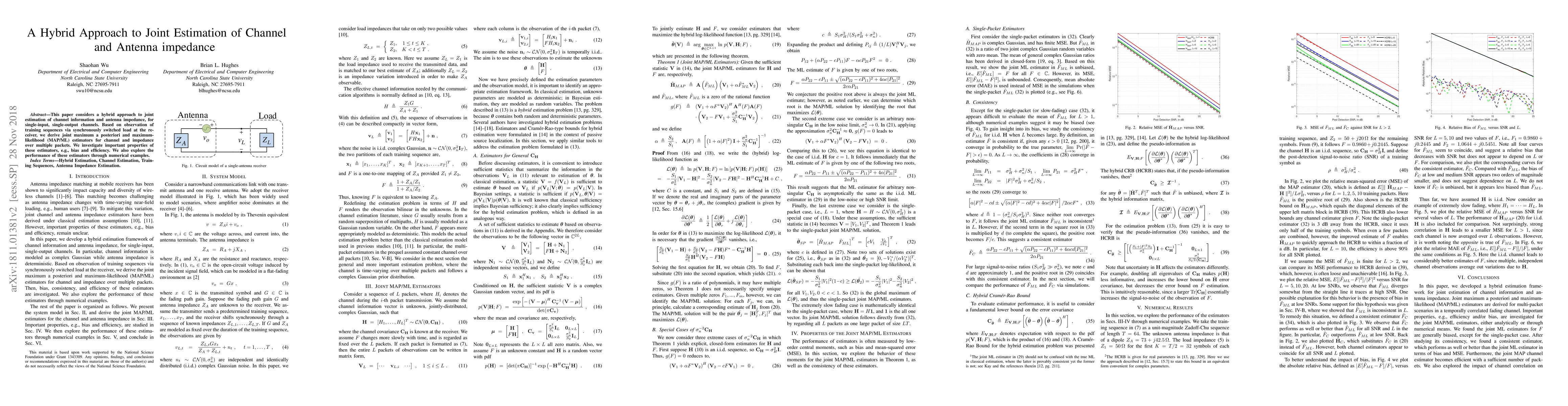 This paper considers a hybrid approach to joint estimation of channel information and antenna impedance, for single-input, single-output channels. Based on observation of training sequences via synchronously switched load at the receiver, we derive joint maximum a posteriori and maximum-likelihood (MAP/ML) estimators for channel and impedance over multiple packets. We investigate important properties of these estimators, e.g., bias and efficiency. We also explore the performance of these estimators through numerical examples.