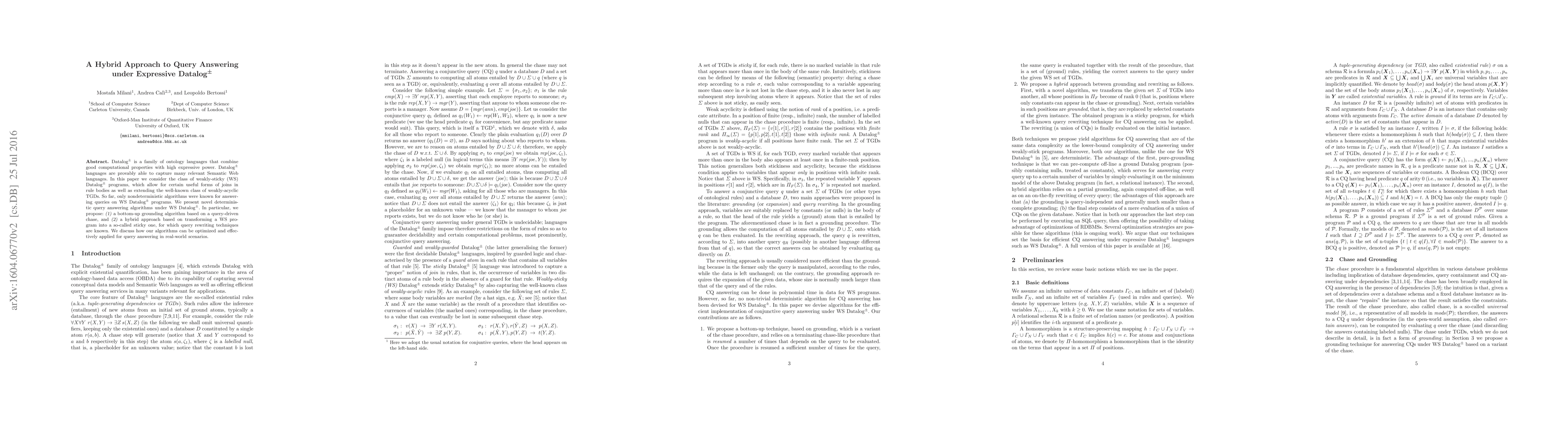 This paper introduces deterministic algorithms for query answering in weakly-sticky Datalog+/-, a powerful ontology language. The authors propose a bottom-up grounding algorithm and a hybrid approach transforming WS programs into sticky ones, enabling effective query answering in practical applications.