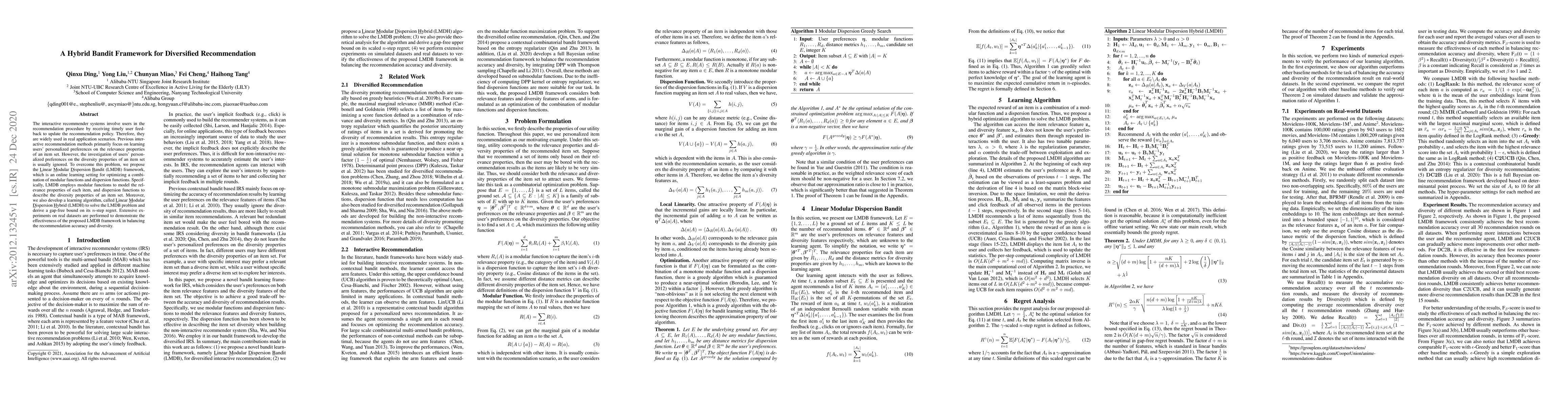 A new recommendation framework balances accuracy and diversity in interactive recommender systems by learning users' preferences on both relevance and item set diversity. The proposed Linear Modular Dispersion Bandit (LMDB) framework achieves a gap-free bound on n-step regret, demonstrating its effectiveness in real-world datasets.