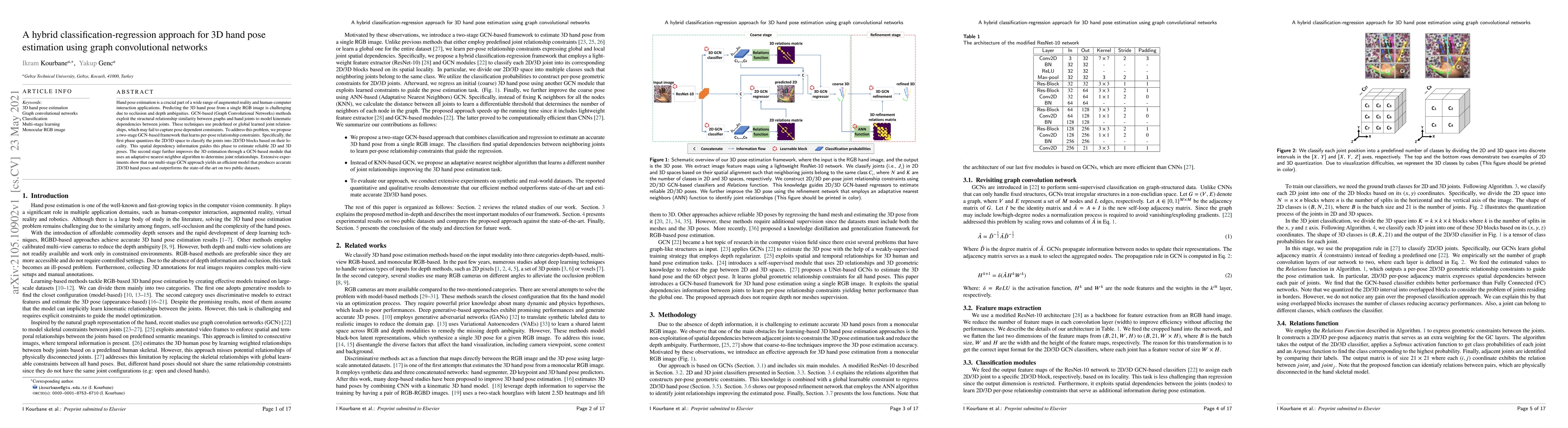 Hand pose estimation is a crucial part of a wide range of augmented reality and human-computer interaction applications. Predicting the 3D hand pose from a single RGB image is challenging due to occlusion and depth ambiguities. GCN-based (Graph Convolutional Networks) methods exploit the structural relationship similarity between graphs and hand joints to model kinematic dependencies between joints. These techniques use predefined or globally learned joint relationships, which may fail to capture pose-dependent constraints. To address this problem, we propose a two-stage GCN-based framework that learns per-pose relationship constraints. Specifically, the first phase quantizes the 2D/3D space to classify the joints into 2D/3D blocks based on their locality. This spatial dependency information guides this phase to estimate reliable 2D and 3D poses. The second stage further improves the 3D estimation through a GCN-based module that uses an adaptative nearest neighbor algorithm to determine joint relationships. Extensive experiments show that our multi-stage GCN approach yields an efficient model that produces accurate 2D/3D hand poses and outperforms the state-of-the-art on two public datasets.