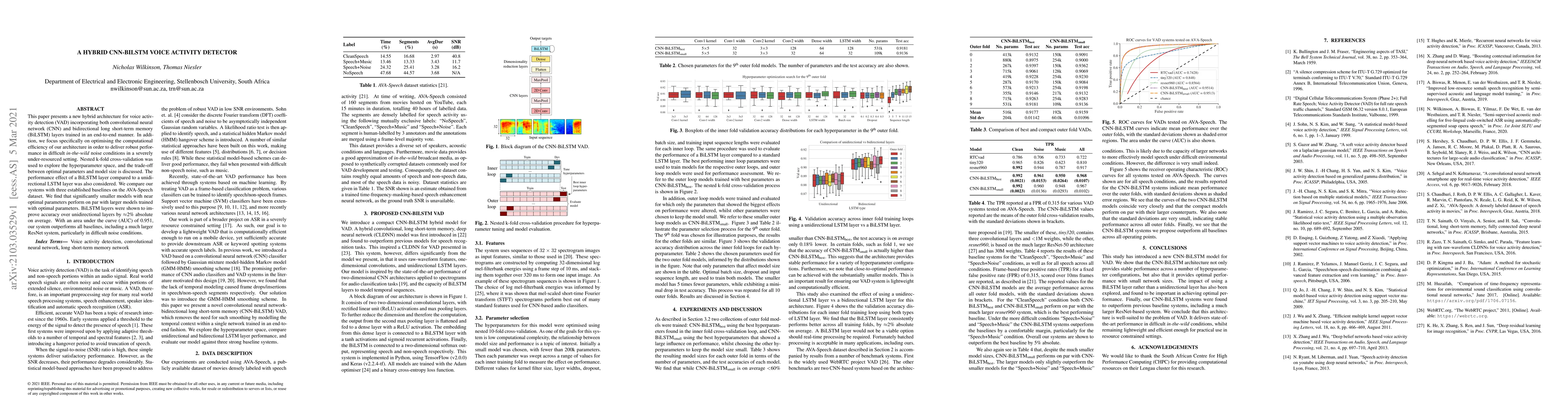 A new hybrid CNN-BiLSTM voice activity detector was developed to improve robust performance in difficult noise conditions, achieving state-of-the-art results with an AUC of 0.951.