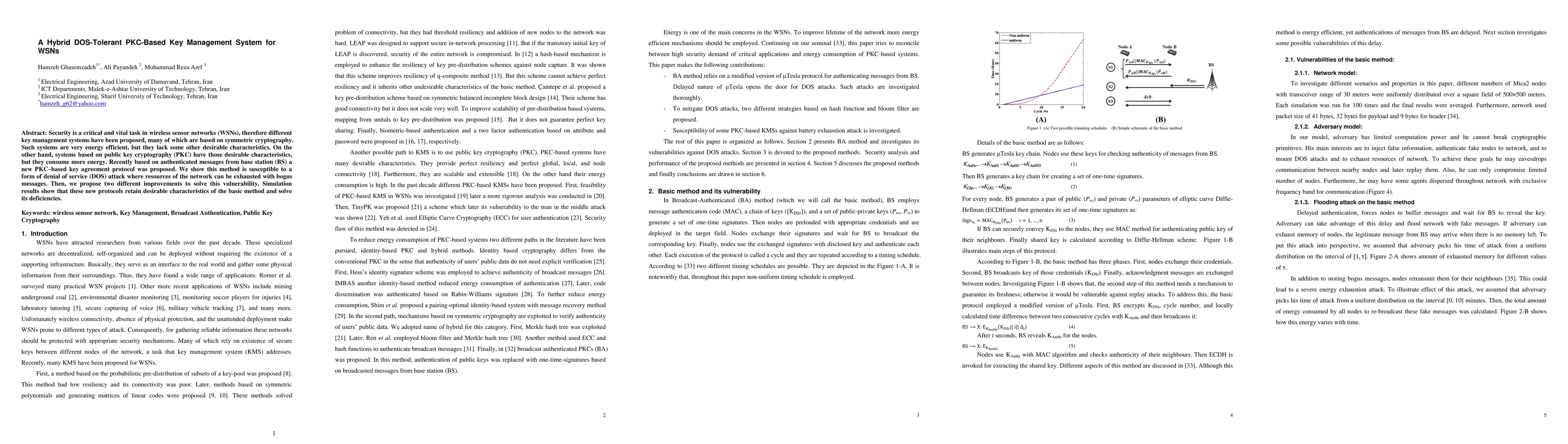 Security is a critical and vital task in wireless sensor networks, therefore different key management systems have been proposed, many of which are based on symmetric cryptography. Such systems are very energy efficient, but they lack some other desirable characteristics. On the other hand, systems based on public key cryptography have those desirable characteristics, but they consume more energy. Recently based on authenticated messages from base station a new PKC based key agreement protocol was proposed. We show this method is susceptible to a form of denial of service attack where resources of the network can be exhausted with bogus messages. Then, we propose two different improvements to solve this vulnerability. Simulation results show that these new protocols retain desirable characteristics of the basic method and solve its deficiencies.