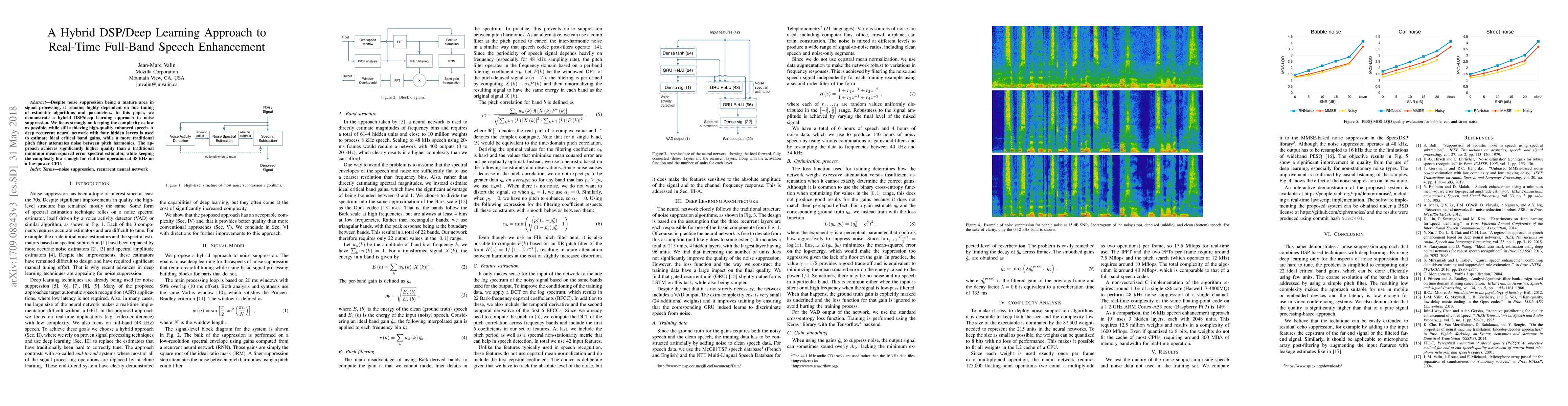 Despite noise suppression being a mature area in signal processing, it remains highly dependent on fine tuning of estimator algorithms and parameters. In this paper, we demonstrate a hybrid DSP/deep learning approach to noise suppression. A deep neural network with four hidden layers is used to estimate ideal critical band gains, while a more traditional pitch filter attenuates noise between pitch harmonics. The approach achieves significantly higher quality than a traditional minimum mean squared error spectral estimator, while keeping the complexity low enough for real-time operation at 48 kHz on a low-power processor.