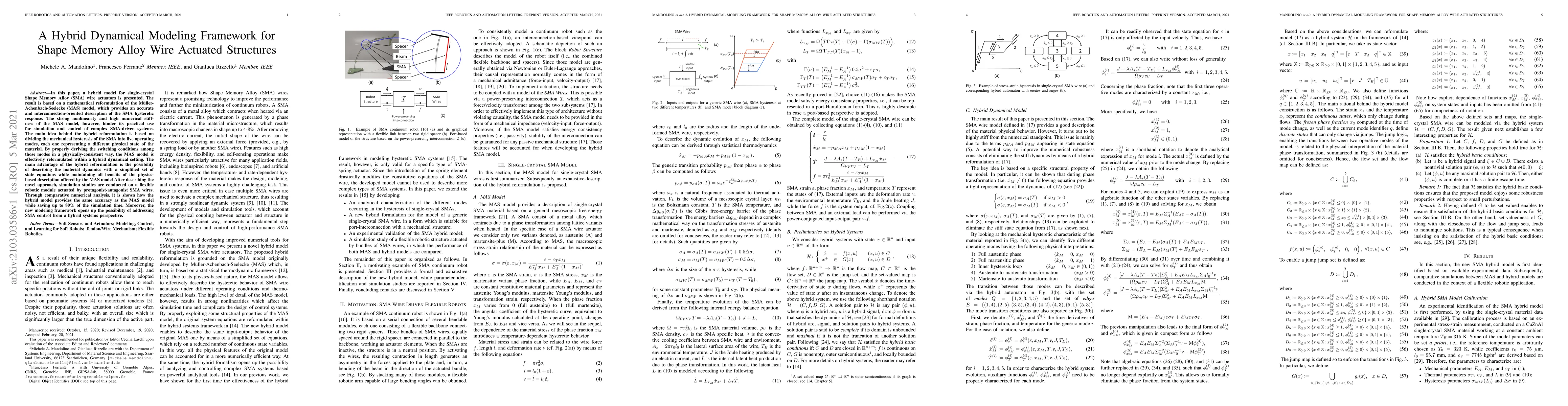 A new hybrid model for Shape Memory Alloy (SMA) wire actuators offers improved accuracy with reduced simulation time compared to the original M"uller-Achenbach-Seelecke (MAS) model.