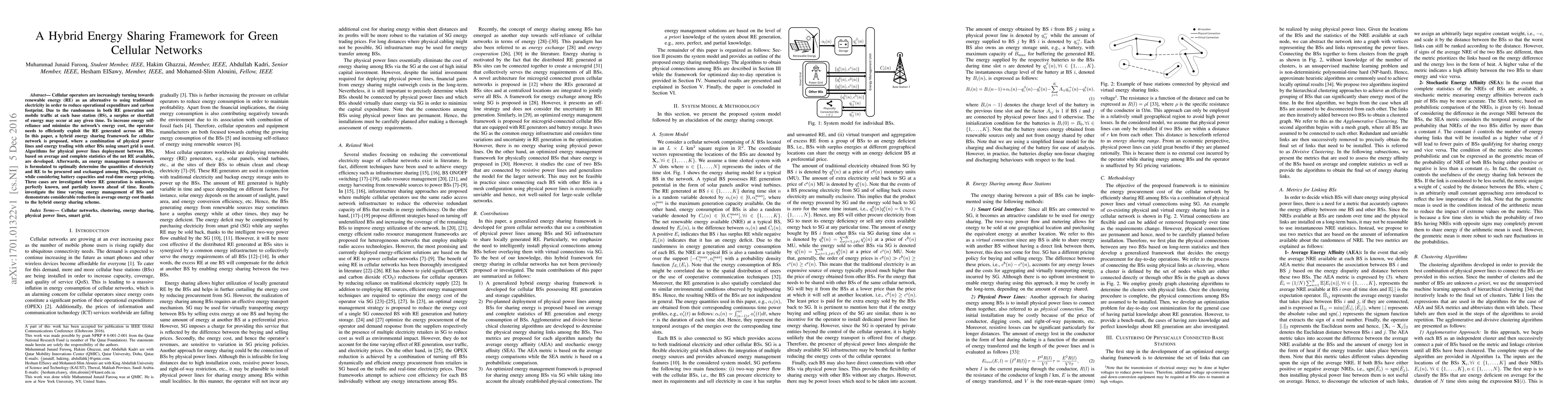 This paper proposes a hybrid energy sharing framework for green cellular networks, combining physical power lines and smart grid energy trading between base stations to optimize renewable energy usage and reduce operational costs. The study develops algorithms for energy management and evaluates scenarios with varying levels of renewable energy predictability, demonstrating significant cost reductions through the proposed framework.