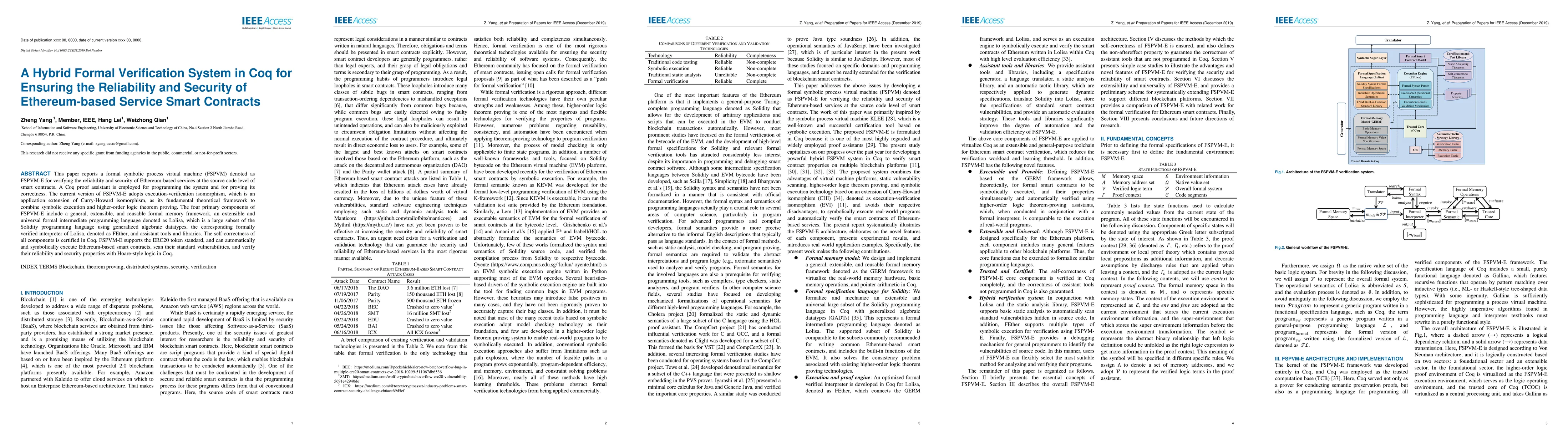 This paper introduces a hybrid formal verification system, FSPVM-E, implemented in Coq to verify the reliability and security of Ethereum smart contracts at the Solidity source code level. It combines symbolic execution and higher-order logic theorem proving, and includes a formally verified interpreter and memory framework to automatically detect vulnerabilities.