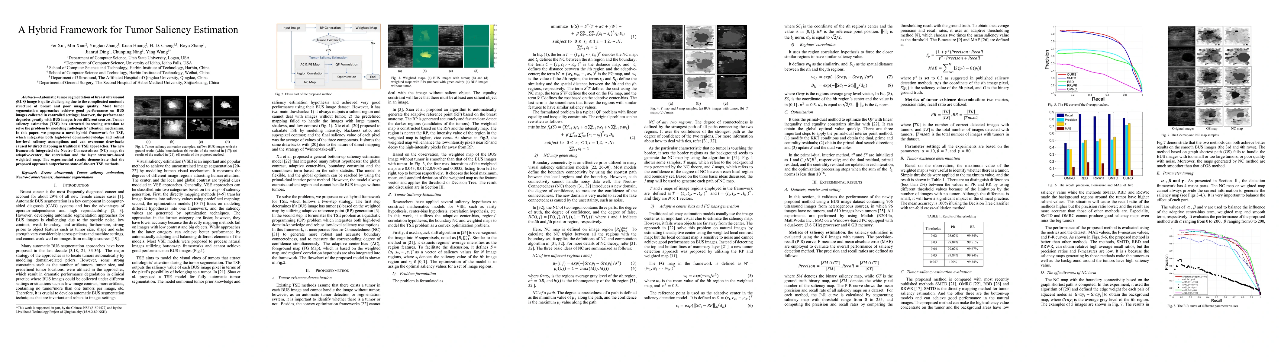 This paper proposes a hybrid framework for tumor saliency estimation in breast ultrasound images, integrating high-level domain knowledge and robust low-level saliency assumptions to improve segmentation performance. The framework outperforms existing methods, as demonstrated by experimental results.