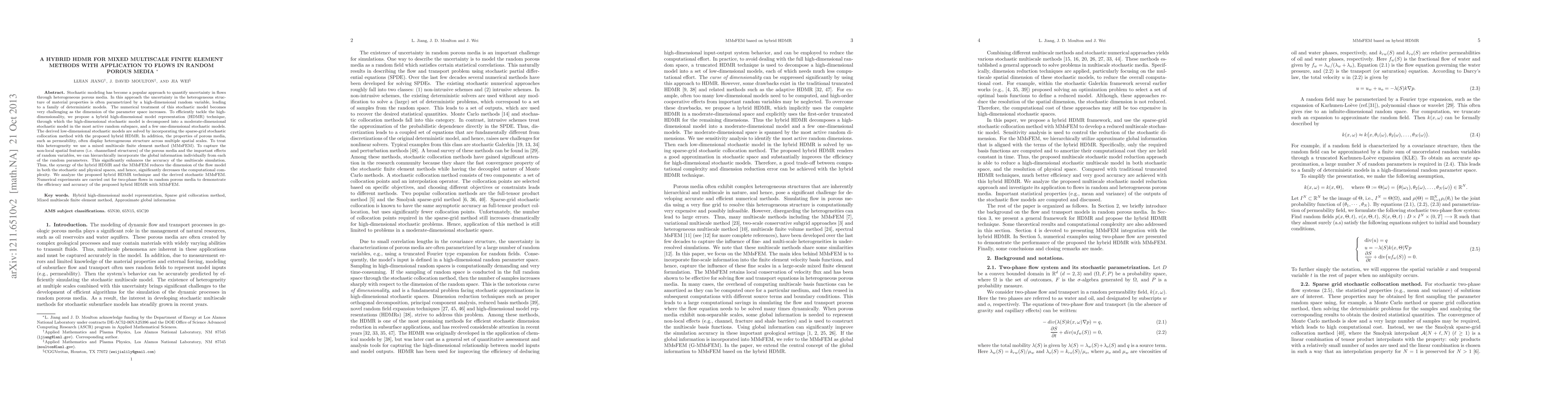 The paper proposes a hybrid high dimensional model representation (HDMR) to efficiently tackle high-dimensional stochastic models for flows in random porous media, decomposing them into lower-dimensional stochastic models. It integrates a mixed multiscale finite element method (MMsFEM) to enhance accuracy by capturing non-local spatial features, significantly reducing computation complexity and demonstrating efficiency and accuracy through numerical experiments.