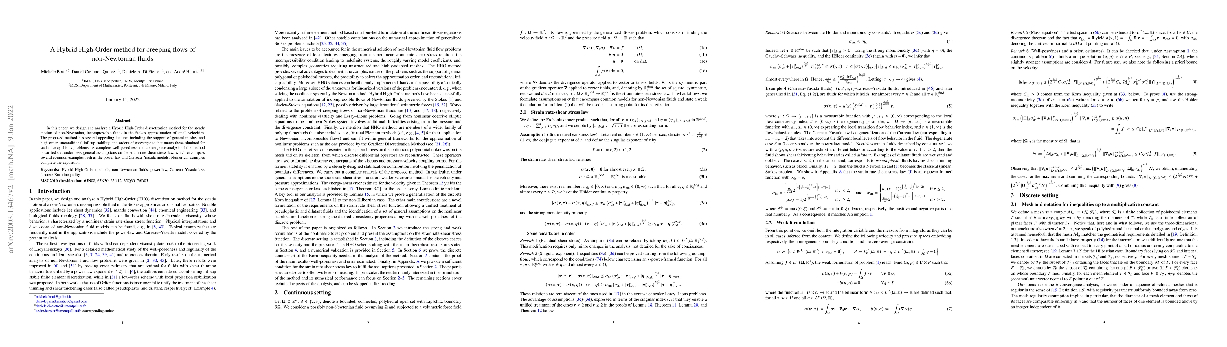 This paper introduces a Hybrid High-Order method for simulating creeping flows of non-Newtonian fluids, demonstrating unconditional inf-sup stability and high-order convergence. The method supports general meshes and is analyzed under broad assumptions for various non-Newtonian models, validated by numerical examples.