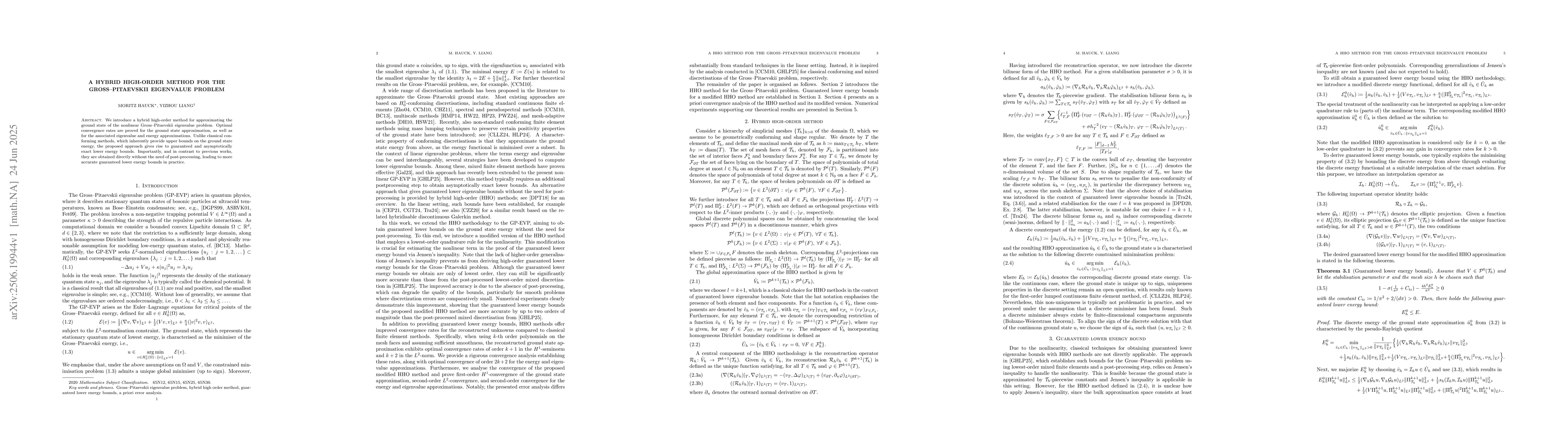 This research introduces a novel Hybrid High-Order method for solving the Gross--Pitaevskii eigenvalue problem, crucial in Bose-Einstein condensate physics. It guarantees optimal convergence rates, lower energy bounds without post-processing, and outperforms previous methods by providing more accurate, guaranteed lower energy bounds in practical applications.