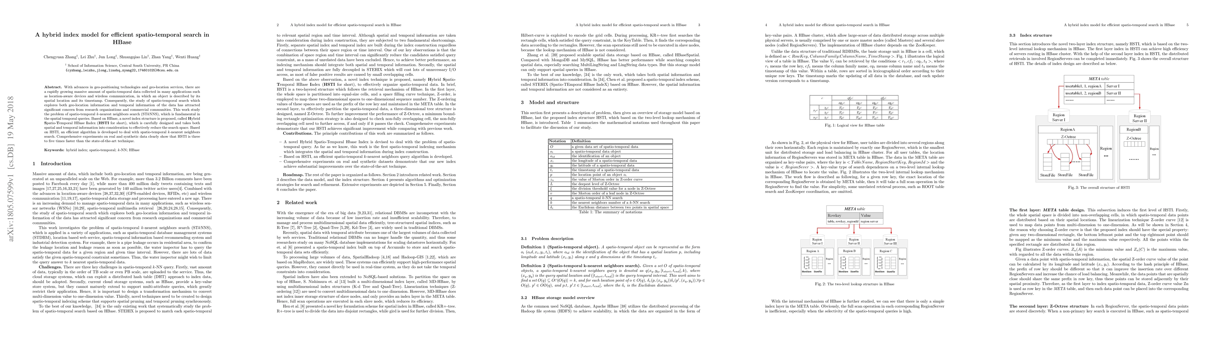 This paper proposes a novel hybrid index model called HSTI for efficient spatio-temporal search in HBase, aiming to optimize spatio-temporal k-nearest neighbors search. Experiments demonstrate that HSTI significantly outperforms existing methods, achieving three to five times faster search speeds.