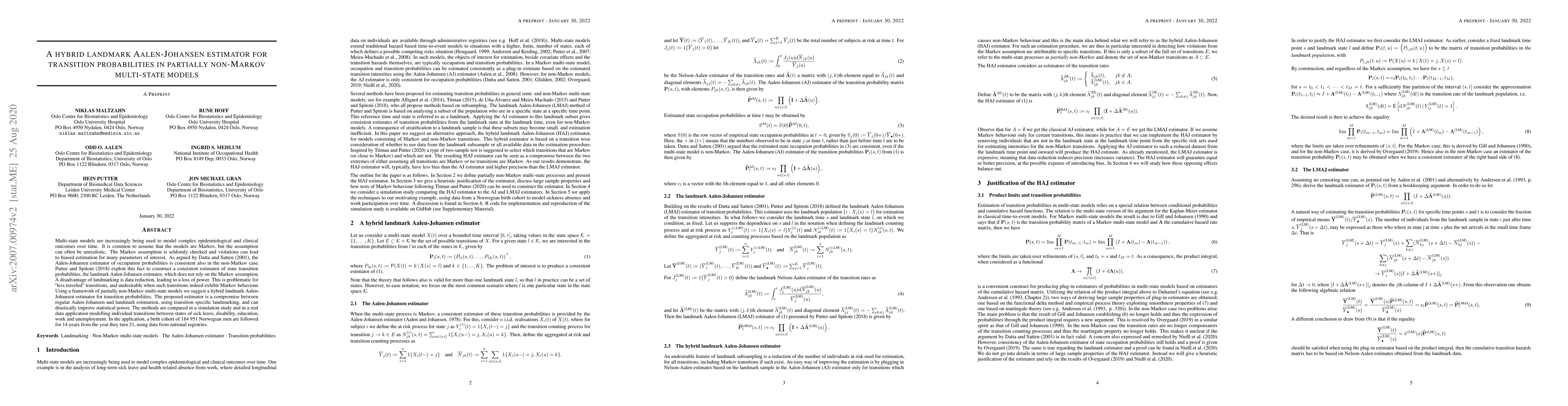 Multi-state models are increasingly being used to model complex epidemiological and clinical outcomes over time. It is common to assume that the models are Markov, but the assumption can often be unrealistic. The Markov assumption is seldomly checked and violations can lead to biased estimation for many parameters of interest. As argued by Datta and Satten (2001), the Aalen-Johansen estimator of occupation probabilities is consistent also in the non-Markov case. Putter and Spitoni (2018) exploit this fact to construct a consistent estimator of state transition probabilities, the landmark Aalen-Johansen estimator, which does not rely on the Markov assumption. A disadvantage of landmarking is data reduction, leading to a loss of power. This is problematic for less traveled transitions, and undesirable when such transitions indeed exhibit Markov behaviour. Using a framework of partially non-Markov multi-state models we suggest a hybrid landmark Aalen-Johansen estimator for transition probabilities. The proposed estimator is a compromise between regular Aalen-Johansen and landmark estimation, using transition specific landmarking, and can drastically improve statistical power. The methods are compared in a simulation study and in a real data application modelling individual transitions between states of sick leave, disability, education, work and unemployment. In the application, a birth cohort of 184951 Norwegian men are followed for 14 years from the year they turn 21, using data from national registries.