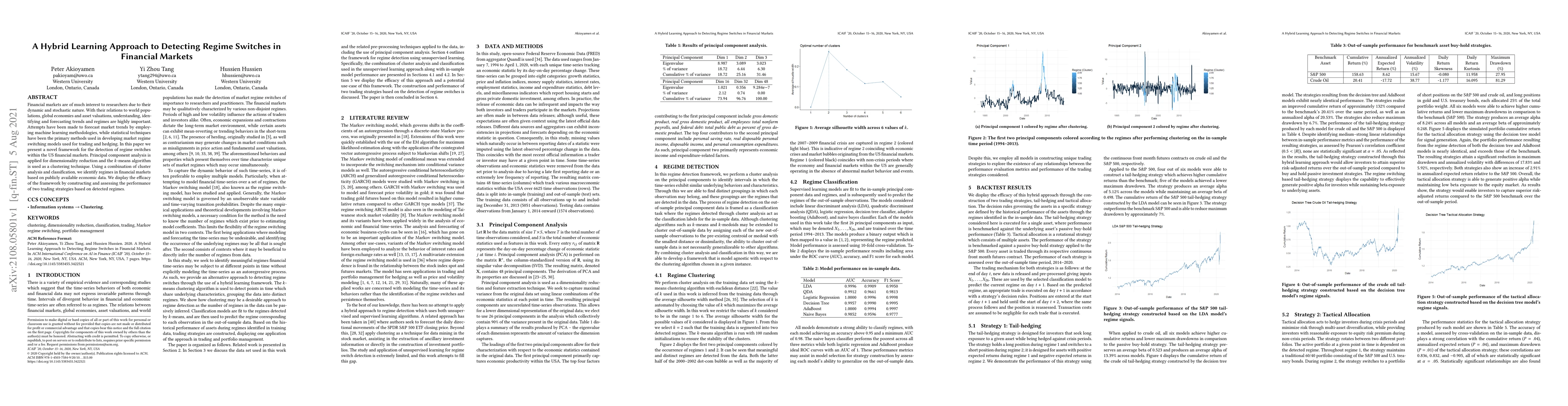 This paper introduces a hybrid learning approach combining principal component analysis and k-means clustering to detect regime switches in US financial markets using public economic data. The framework's effectiveness is demonstrated through the evaluation of two trading strategies based on identified regimes.