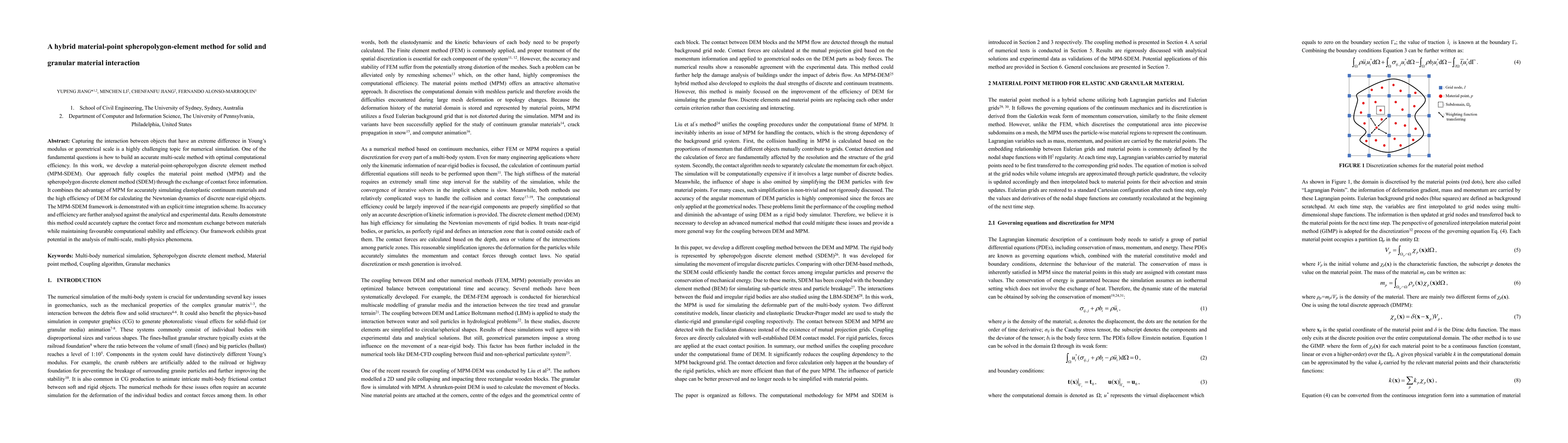 Researchers develop a hybrid method combining material point and discrete element methods for simulating interactions between materials with vastly different properties, achieving accurate results while maintaining computational efficiency.