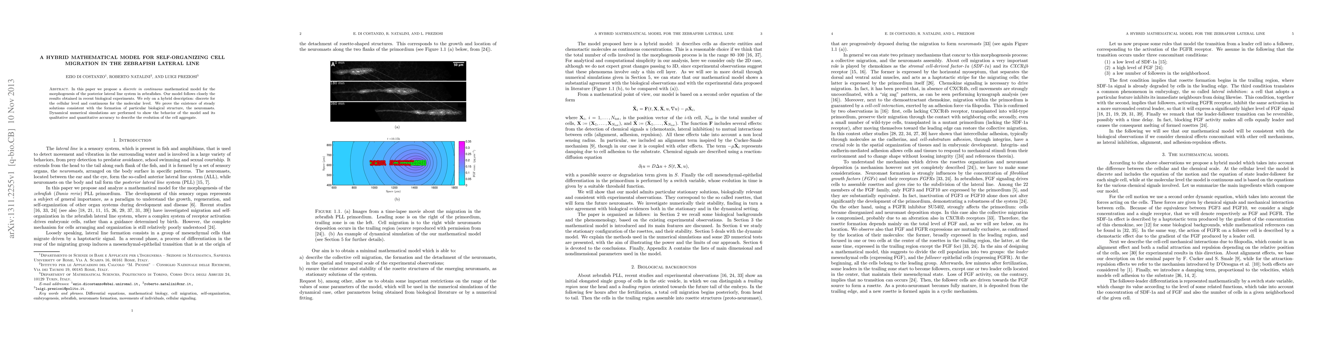 Researchers developed a mathematical model to describe how cells in zebrafish migrate and organize into neuromasts, with the model combining discrete cellular behavior and continuous molecular processes, demonstrating its accuracy through numerical simulations.