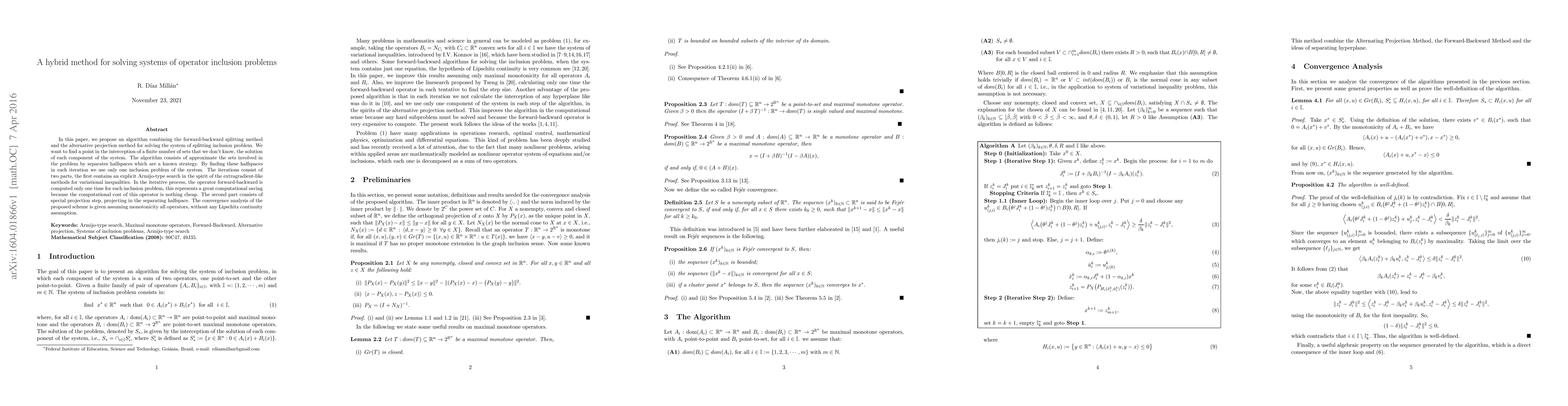 This paper proposes a hybrid algorithm combining forward-backward splitting and alternative projection methods to solve systems of operator inclusion problems. The algorithm iteratively approximates unknown sets using known halfspaces, optimizing computational efficiency by minimizing the computation of the forward-backward operator.
