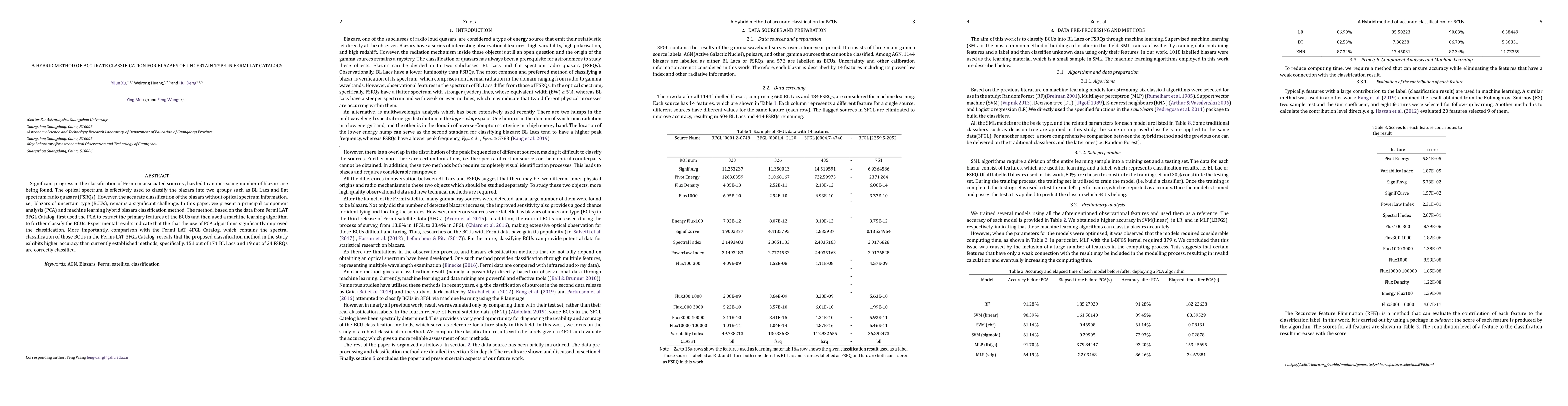 Significant progress in the classification of Fermi unassociated sources , has led to an increasing number of blazars are being found. The optical spectrum is effectively used to classify the blazars into two groups such as BL Lacs and flat spectrum radio quasars (FSRQs). However, the accurate classification of the blazars without optical spectrum information, i.e., blazars of uncertain type (BCUs), remains a significant challenge. In this paper, we present a principal component analysis (PCA) and machine learning hybrid blazars classification method. The method, based on the data from Fermi LAT 3FGL Catalog, first used the PCA to extract the primary features of the BCUs and then used a machine learning algorithm to further classify the BCUs. Experimental results indicate that the that the use of PCA algorithms significantly improved the classification. More importantly, comparison with the Fermi LAT 4FGL Catalog, which contains the spectral classification of those BCUs in the Fermi-LAT 3FGL Catalog, reveals that the proposed classification method in the study exhibits higher accuracy than currently established methods; specifically, 151 out of 171 BL Lacs and 19 out of 24 FSRQs are correctly classified.