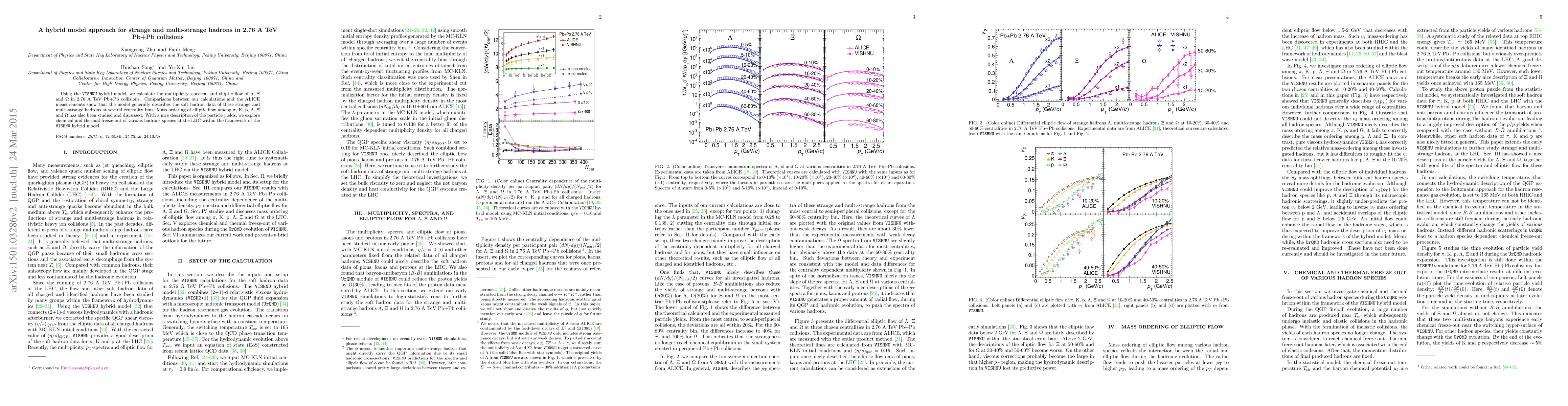 This paper employs the VISHNU hybrid model to analyze the production, spectra, and elliptic flow of strange and multi-strange hadrons ($\Lambda$, $\Xi$, $\Omega$) in 2.76 A TeV Pb+Pb collisions, finding good agreement with ALICE measurements. The study also investigates the mass ordering of elliptic flow and explores chemical and thermal freeze-out processes for various hadron species.
