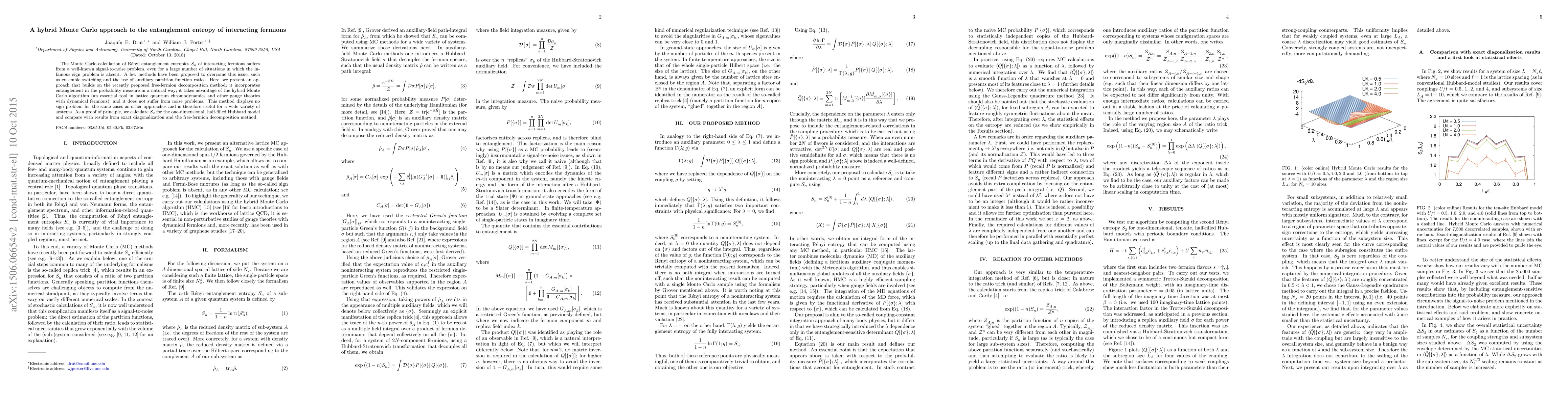 The Monte Carlo calculation of R\'enyi entanglement entropies $S^{}_n$ of interacting fermions suffers from a well-known signal-to-noise problem, even for a large number of situations in which the infamous sign problem is absent. A few methods have been proposed to overcome this issue, such as ensemble switching and the use of auxiliary partition-function ratios. Here, we present an approach that builds on the recently proposed free-fermion decomposition method; it incorporates entanglement in the probability measure in a natural way; it takes advantage of the hybrid Monte Carlo algorithm (an essential tool in lattice quantum chromodynamics and other gauge theories with dynamical fermions); and it does not suffer from noise problems. This method displays no sign problem for the same cases as other approaches and is therefore useful for a wide variety of systems. As a proof of principle, we calculate $S_2^{}$ for the one-dimensional, half-filled Hubbard model and compare with results from exact diagonalization and the free-fermion decomposition method.