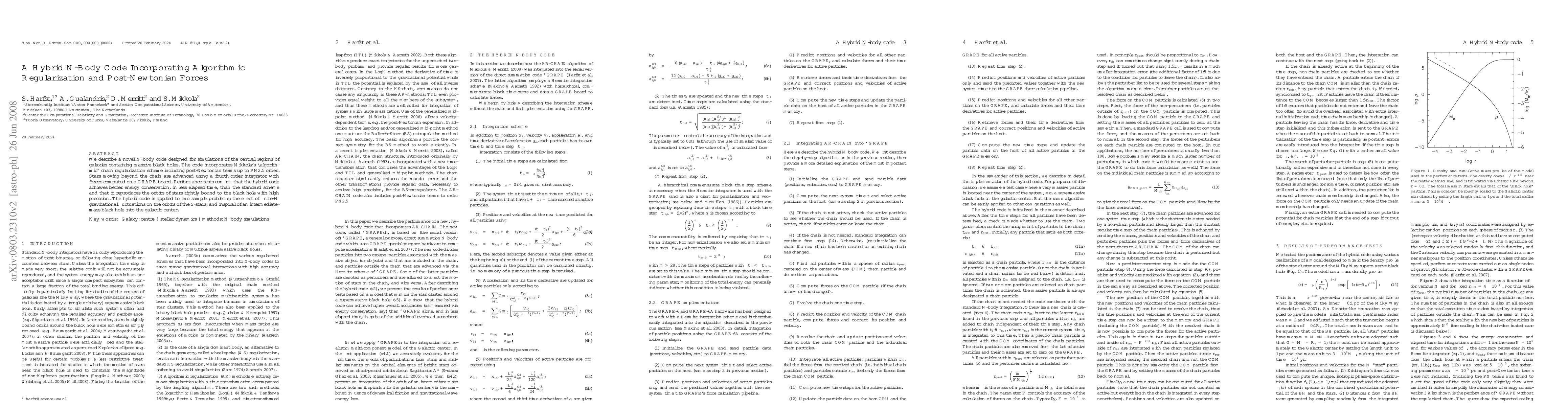 This paper presents a hybrid N-body simulation code that combines algorithmic regularization and post-Newtonian forces, achieving superior energy conservation and precision in modeling the central regions of galaxies with massive black holes. The code's performance is validated through simulations of gravitational fluctuations and black hole inspirals.