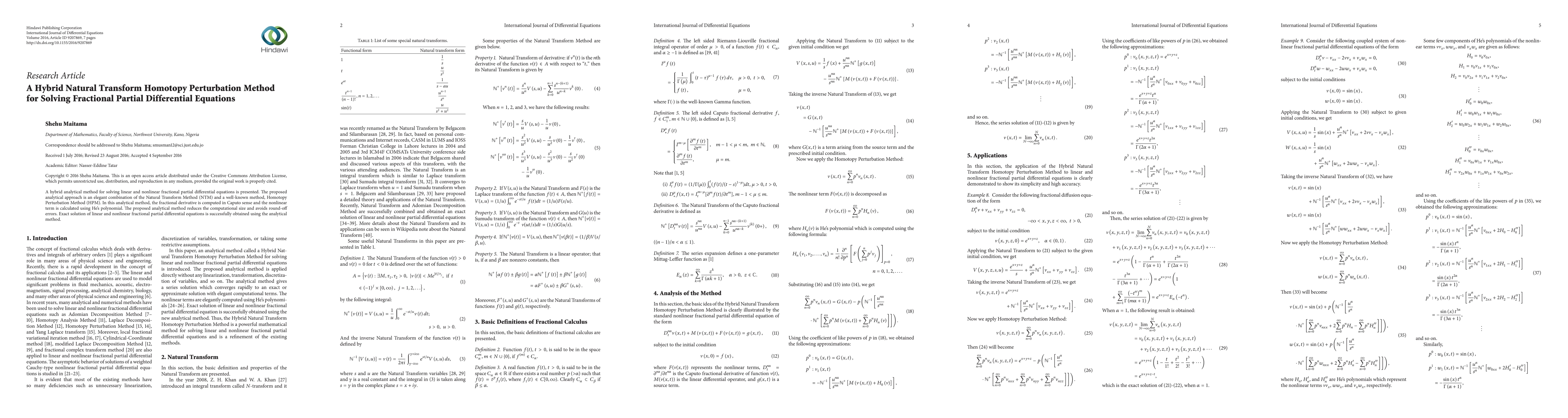 This paper introduces a hybrid analytical method combining the Natural Transform Method (NTM) and Homotopy Perturbation Method (HPM) to solve linear and nonlinear fractional partial differential equations. The method uses Caputo derivatives and He's polynomials to compute fractional derivatives and nonlinear terms, respectively, achieving exact solutions with reduced computational effort and minimal error.