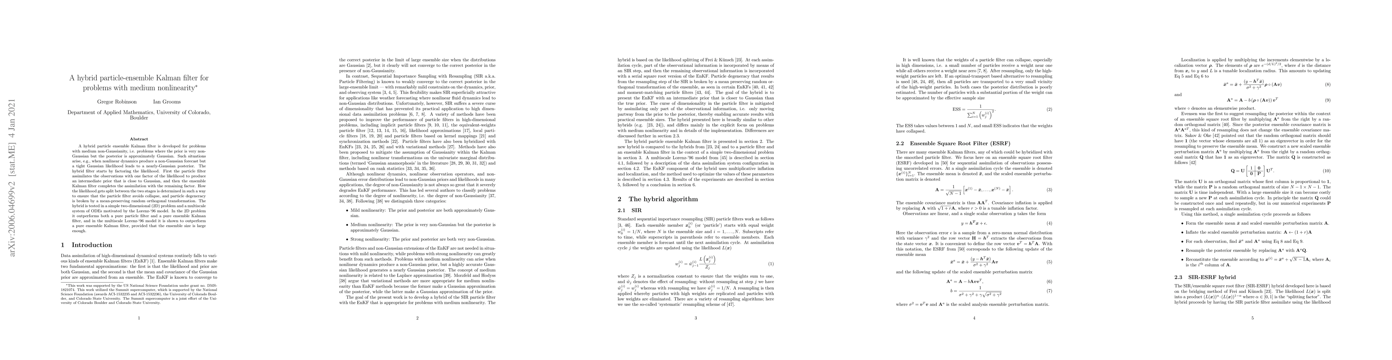This paper introduces a hybrid particle-ensemble Kalman filter designed for medium non-Gaussian problems, where the prior is non-Gaussian but the posterior is Gaussian. The method combines a particle filter and an ensemble Kalman filter to effectively handle such scenarios.