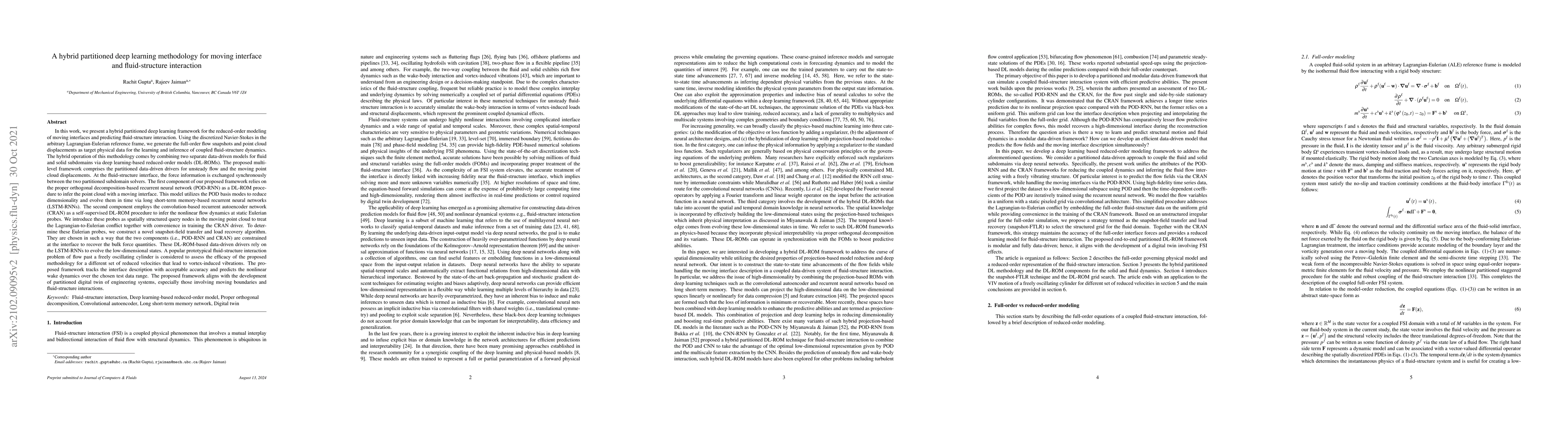This paper introduces a hybrid partitioned deep learning framework for modeling fluid-structure interaction, combining POD-RNN and CRAN models to infer fluid dynamics and point cloud displacements. The framework effectively exchanges force information between fluid and solid subdomains and accurately tracks the moving interface and nonlinear wake dynamics.