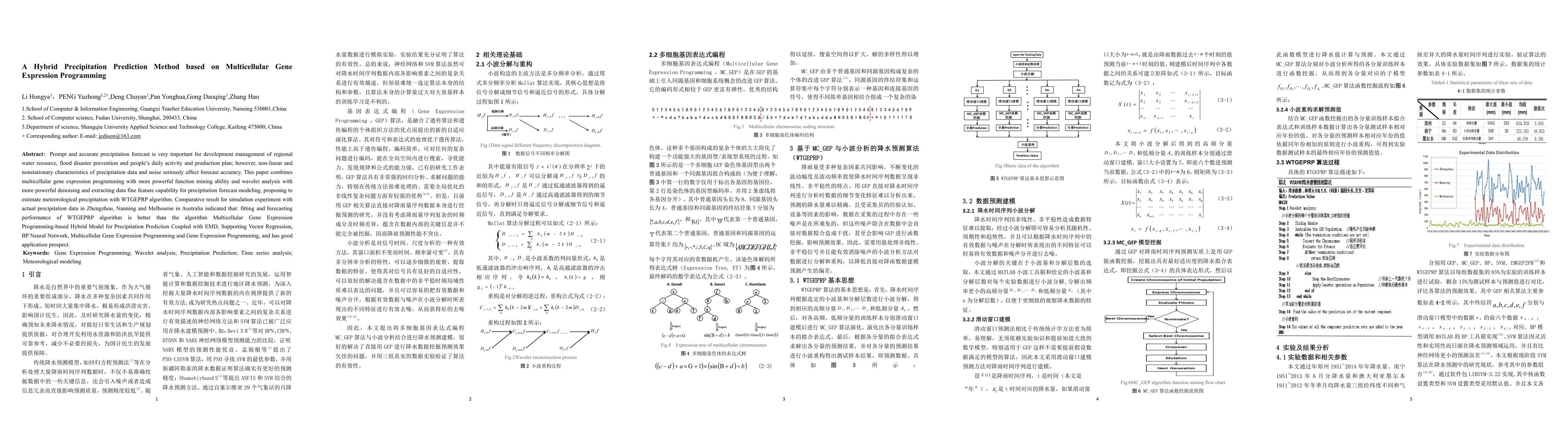 This paper proposes a hybrid precipitation prediction method using Multicellular Gene Expression Programming (MGEP) combined with wavelet analysis for better denoising and feature extraction. The WTGEPRP algorithm shows superior performance in fitting and forecasting compared to several other methods, indicating promising application potential for regional water management and disaster prevention.