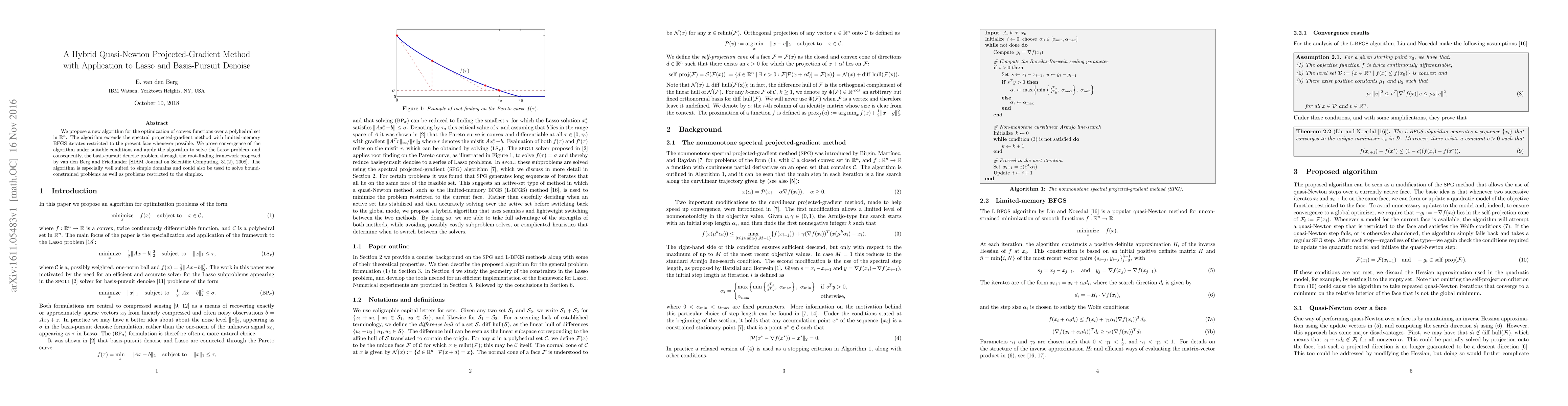 This paper introduces a hybrid algorithm combining Quasi-Newton and projected-gradient methods for optimizing convex functions within polyhedral sets in Rn. The algorithm, proven to converge under certain conditions, is effectively applied to solve Lasso and basis-purse denoise problems. Its simplicity makes it suitable for straightforward domains and adaptable for bound-constrained or simplex-restricted problems.