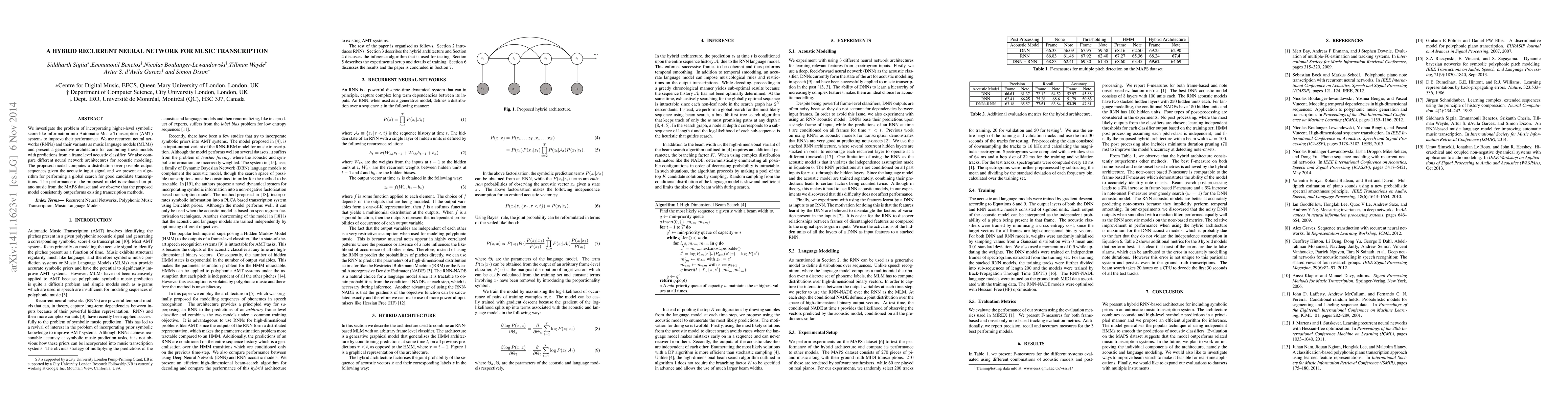 A hybrid neural network model combines acoustic features with symbolic music information to improve automatic music transcription performance, outperforming existing methods on piano music datasets.