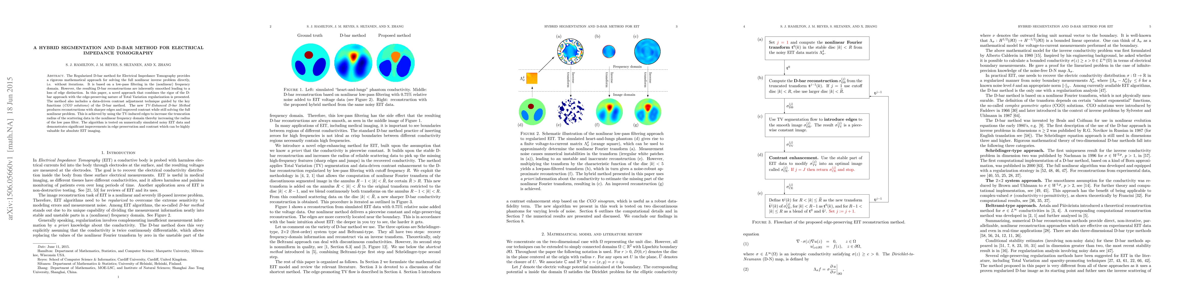 This paper introduces a hybrid method combining the D-bar method with Total Variation regularization to enhance edge preservation in Electrical Impedance Tomography reconstructions. The TV-Enhanced D-bar Method improves contrast and edge sharpness while solving the full nonlinear inverse problem, validated through simulations on noisy data.