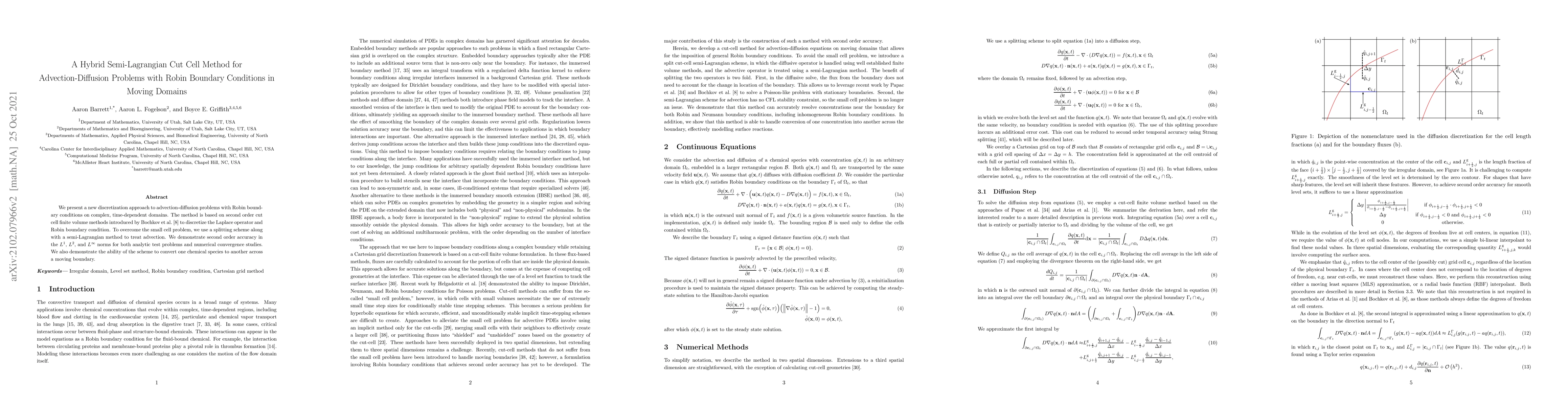 This paper introduces a hybrid semi-Lagrangian cut cell method for solving advection-diffusion problems with Robin boundary conditions in time-dependent domains. The method combines second-order cut cell finite volume techniques with a semi-Lagrangian approach to achieve second-order accuracy and handle complex domain movements.