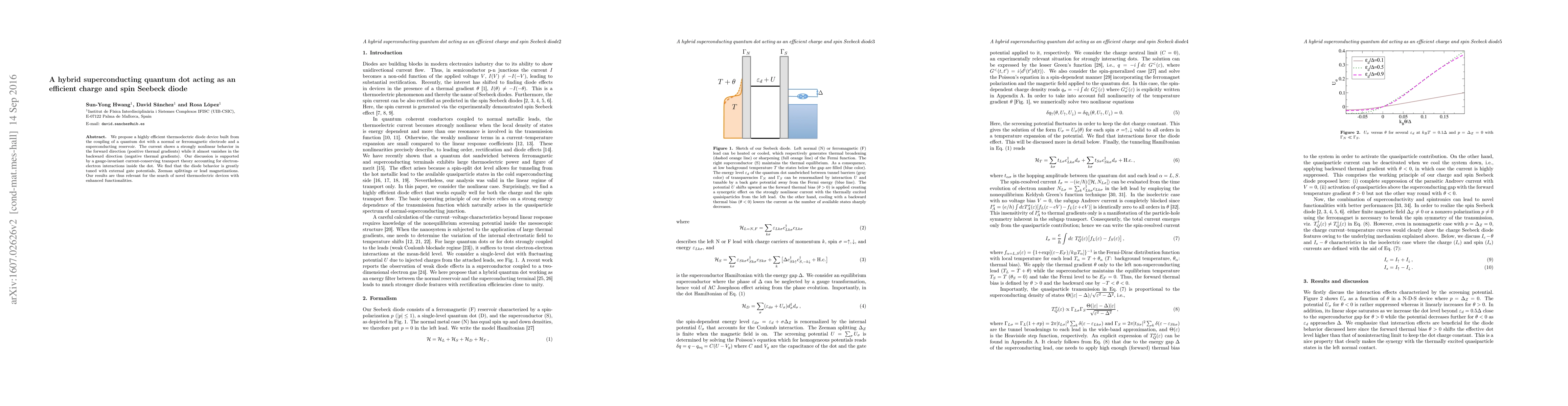 A new type of thermoelectric device is proposed that uses a superconducting quantum dot to efficiently convert heat into electricity. The device shows strongly nonlinear behavior in one direction and almost no current in the opposite direction.