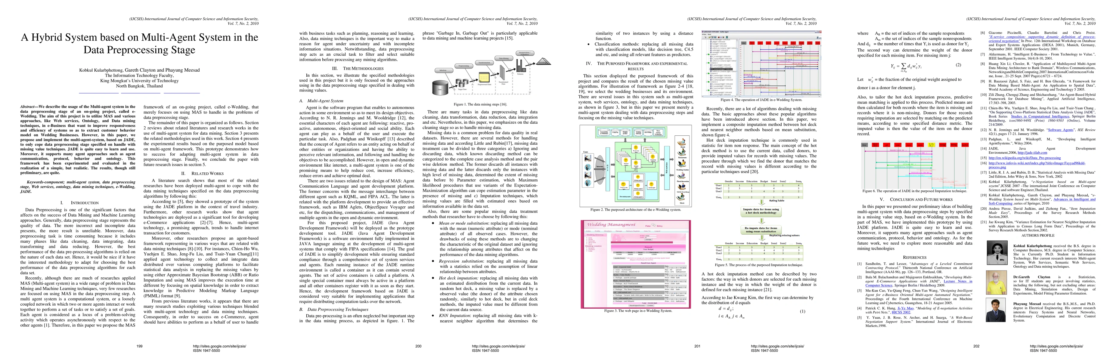 This paper proposes a hybrid system using a Multi-Agent System (MAS) based on JADE for the data preprocessing stage in the e-Wedding project, focusing on handling missing values. Preliminary results indicate the system's potential to improve responsiveness and efficiency in extracting customer behavior models for wedding businesses.