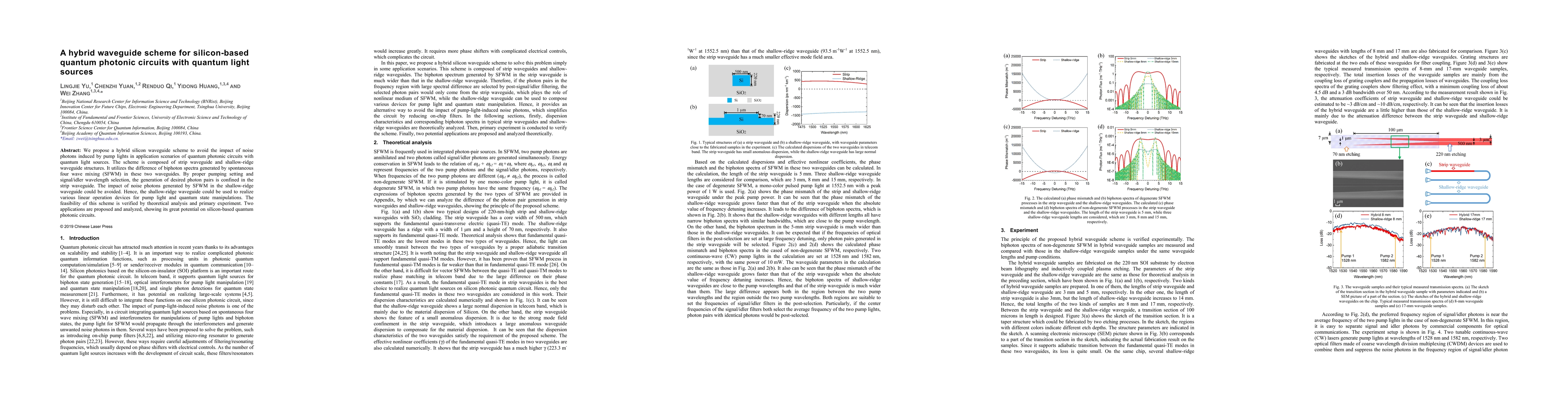 This paper proposes a hybrid silicon waveguide scheme to minimize noise photons from pump lights in quantum photonic circuits. It utilizes strip and shallow-ridge waveguides, leveraging differences in biphoton spectra from spontaneous four wave mixing to confine desired photon pairs in the strip waveguide, thus avoiding noise in the shallow-ridge waveguide for linear operations. Theoretical analysis and initial experiments confirm the scheme's feasibility.