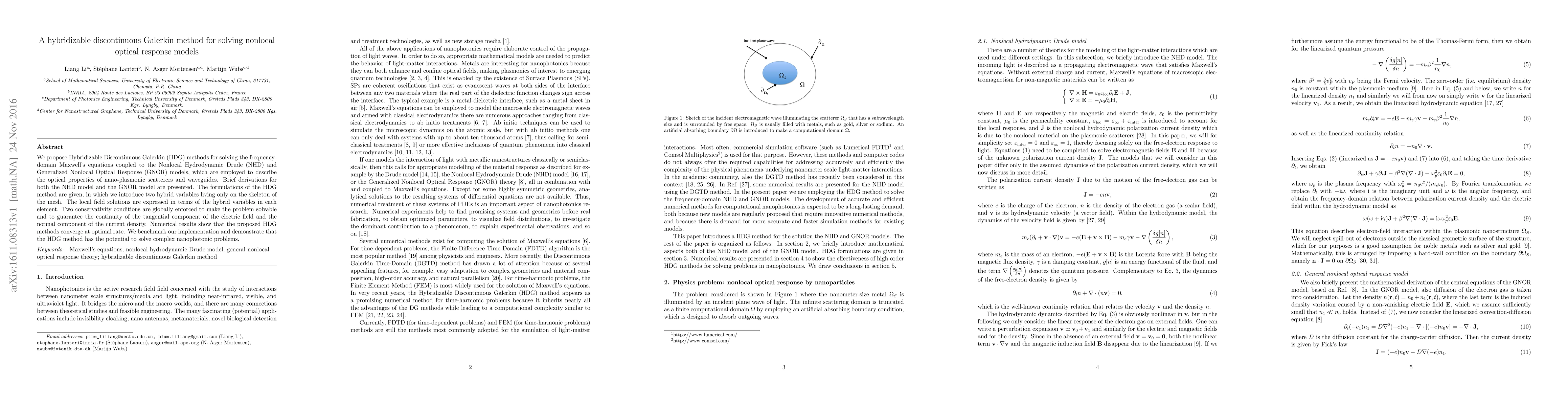 We propose Hybridizable Discontinuous Galerkin (HDG) methods for solving the frequency-domain Maxwell's equations coupled to the Nonlocal Hydrodynamic Drude (NHD) and Generalized Nonlocal Optical Response (GNOR) models, which are employed to describe the optical properties of nano-plasmonic scatterers and waveguides. Brief derivations for both the NHD model and the GNOR model are presented. The formulations of the HDG method are given, in which we introduce two hybrid variables living only on the skeleton of the mesh. The local field solutions are expressed in terms of the hybrid variables in each element. Two conservativity conditions are globally enforced to make the problem solvable and to guarantee the continuity of the tangential component of the electric field and the normal component of the current density. Numerical results show that the proposed HDG methods converge at optimal rate. We benchmark our implementation and demonstrate that the HDG method has the potential to solve complex nanophotonic problems.