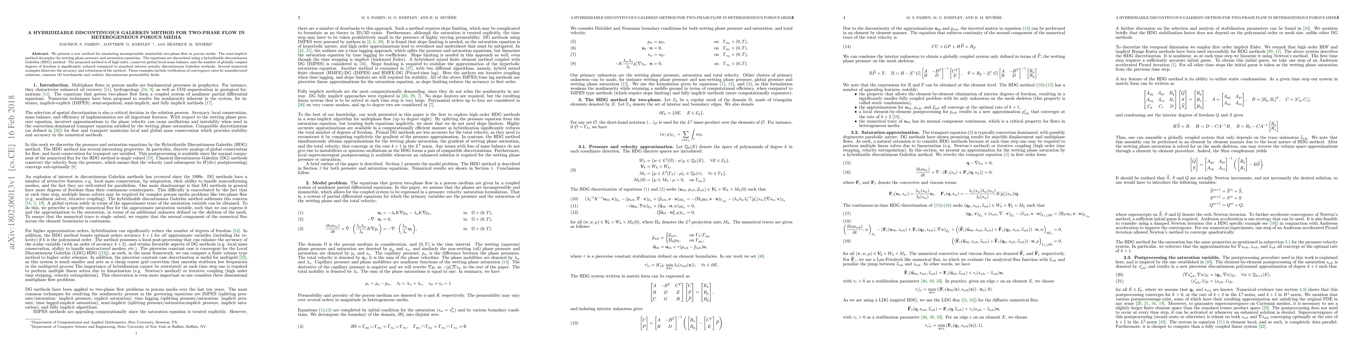 This paper introduces a hybridizable discontinuous Galerkin (HDG) method for simulating incompressible two-phase flow in heterogeneous porous media, demonstrating high-order accuracy and reduced global coupling compared to standard methods. Numerical examples validate the method's accuracy and robustness across various scenarios.