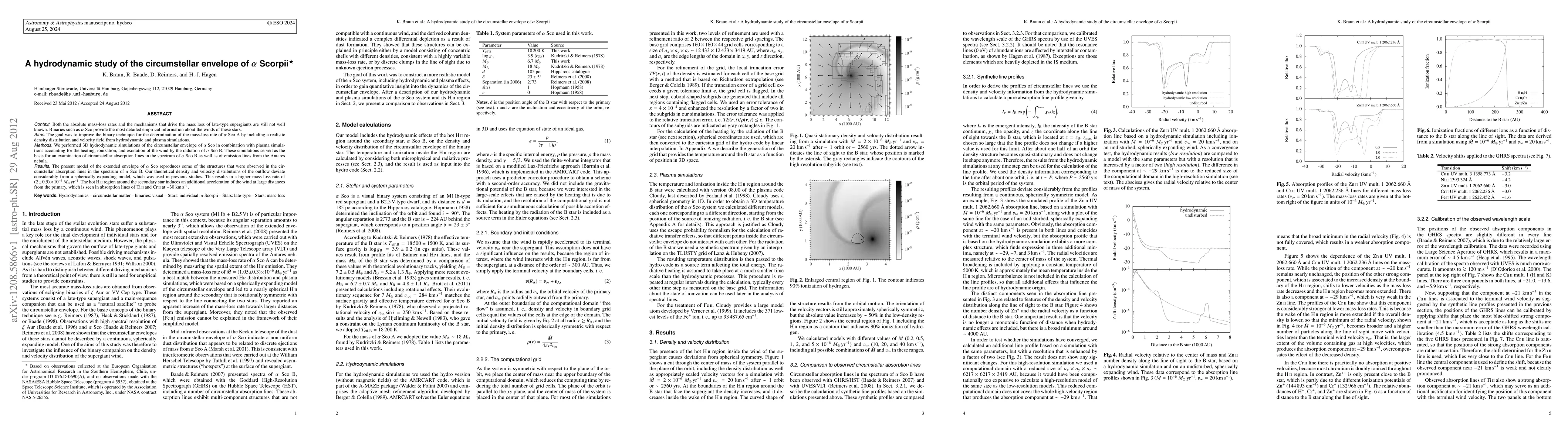 Context: Both the absolute mass-loss rates and the mechanisms that drive the mass loss of late-type supergiants are still not well known. Binaries such as alpha Sco provide the most detailed empirical information about the winds of these stars. Aims: The goal was to improve the binary technique for the determination of the mass-loss rate of alpha Sco A by including a realistic density distribution and velocity field from hydrodynamic and plasma simulations. Methods: We performed 3D hydrodynamic simulations of the circumstellar envelope of alpha Sco in combination with plasma simulations accounting for the heating, ionization, and excitation of the wind by the radiation of alpha Sco B. These simulations served as the basis for an examination of circumstellar absorption lines in the spectrum of alpha Sco B as well as of emission lines from the Antares nebula. Results: The present model of the extended envelope of alpha Sco reproduces some of the structures that were observed in the circumstellar absorption lines in the spectrum of alpha Sco B. Our theoretical density and velocity distributions of the outflow deviate considerably from a spherically expanding model, which was used in previous studies. This results in a higher mass-loss rate of (2 +/- 0.5) x 10^-6 M_sun/yr. The hot H II region around the secondary star induces an additional acceleration of the wind at large distances from the primary, which is seen in absorption lines of Ti II and Cr II at -30 km/s.