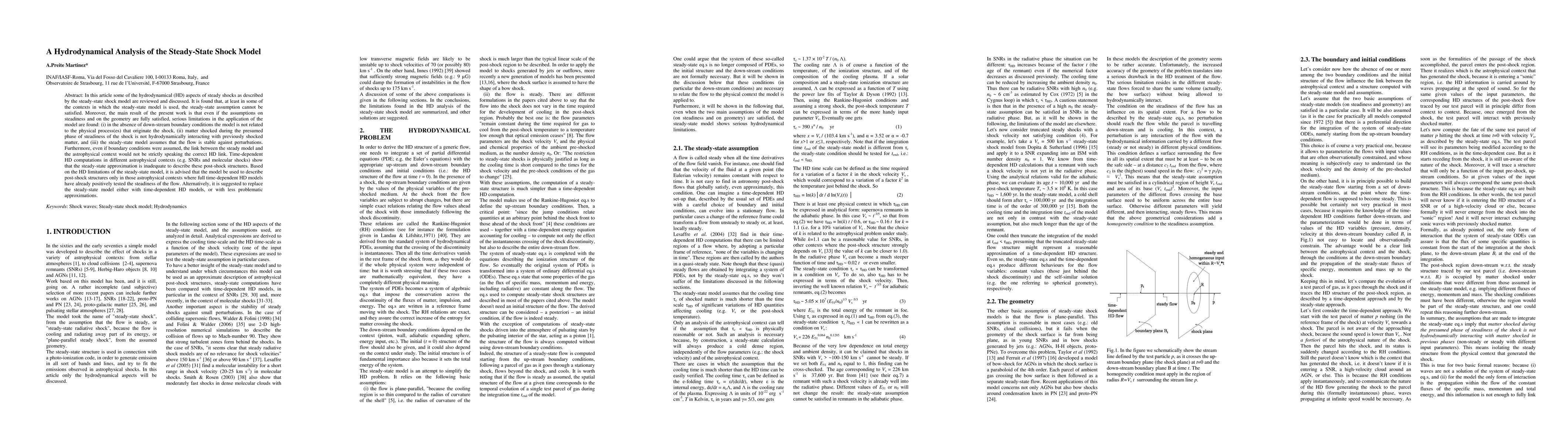 In this article some of the hydrodynamical (HD) aspects of steady shocks as described by the steady-state shock model are reviewed and discussed. It is found that, at least in some of the contexts in which the steady-state model is used, the steady-state assumption cannot be satisfied. Moreover, the main result of the present work is that even if the assumptions on steadiness and on the geometry are fully satisfied, serious limitations in the application of the model are found: (i) in the absence of down-stream boundary conditions the model is not related to the physical process(es) that originate the shock, (ii) matter shocked during the presumed phase of steadiness of the shock is not hydrodynamically interacting with previously shocked matter, and (iii) the steady-state model assumes that the flow is stable against perturbations. Furthermore, even if boundary conditions were assumed, the link between the steady model and the astrophysical context would not be strictly speaking the correct HD link. Time-dependent HD computations in different astrophysical contexts (e.g. SNRs and molecular shocks) show that the steady-state approximation is inadequate to describe these post-shock structures. Based on the HD limitations of the steady-state model, it is advised that the model be used to describe post-shock structures only in those astrophysical contexts where full time-dependent HD models have already positively tested the steadiness of the flow. Alternatively, it is suggested to replace the steady-state model either with time-dependent HD models, or with less problematic approximations.