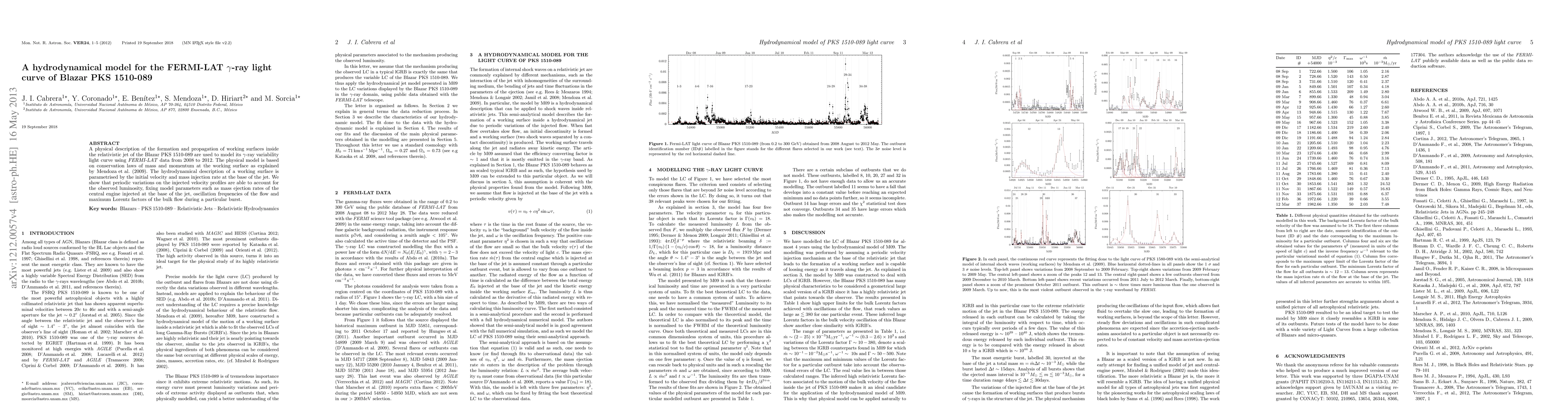 A physical description of the formation and propagation of the working surface inside the relativistic jet of the Blazar PKS 1510-089 are used to model its gamma-ray variability light curve using FERMI-LAT data from 2008 to 2012. The physical model is based on conservation laws of mass and momentum at the working surface as explained by Mendoza et al. (2009). The hydrodynamical description of the working surface is parametrised by the initial velocity and mass injection rate at the base of the jet. We show that periodic variations on the injected velocity profiles are able to account for the observed luminosity. With this, we are able to obtain mass ejection rates of the central engine which are injected at the base of the jet, and oscillation frequencies of the flow, amongst other physical parameters.