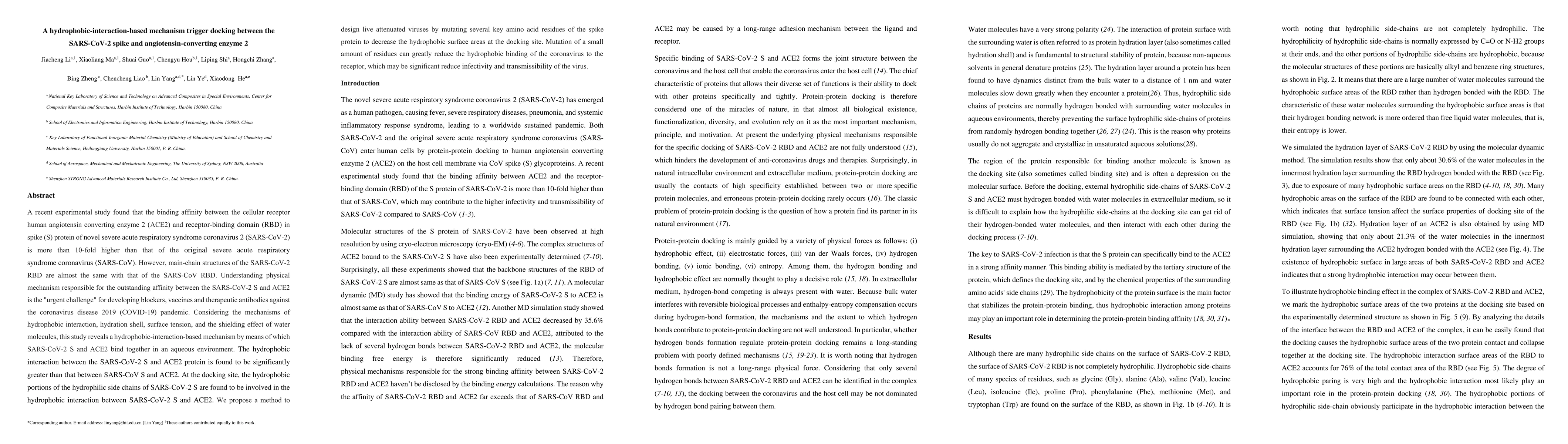 A recent experimental study found that the binding affinity between the cellular receptor human angiotensin converting enzyme 2 (ACE2) and receptor-binding domain (RBD) in spike (S) protein of novel severe acute respiratory syndrome coronavirus 2 (SARS-CoV-2) is more than 10-fold higher than that of the original severe acute respiratory syndrome coronavirus (SARS-CoV). However, main-chain structures of the SARS-CoV-2 RBD are almost the same with that of the SARS-CoV RBD. Understanding physical mechanism responsible for the outstanding affinity between the SARS-CoV-2 S and ACE2 is the "urgent challenge" for developing blockers, vaccines and therapeutic antibodies against the coronavirus disease 2019 (COVID-19) pandemic. Considering the mechanisms of hydrophobic interaction, hydration shell, surface tension, and the shielding effect of water molecules, this study reveals a hydrophobic-interaction-based mechanism by means of which SARS-CoV-2 S and ACE2 bind together in an aqueous environment. The hydrophobic interaction between the SARS-CoV-2 S and ACE2 protein is found to be significantly greater than that between SARS-CoV S and ACE2. At the docking site, the hydrophobic portions of the hydrophilic side chains of SARS-CoV-2 S are found to be involved in the hydrophobic interaction between SARS-CoV-2 S and ACE2. We propose a method to design live attenuated viruses by mutating several key amino acid residues of the spike protein to decrease the hydrophobic surface areas at the docking site. Mutation of a small amount of residues can greatly reduce the hydrophobic binding of the coronavirus to the receptor, which may be significant reduce infectivity and transmissibility of the virus.