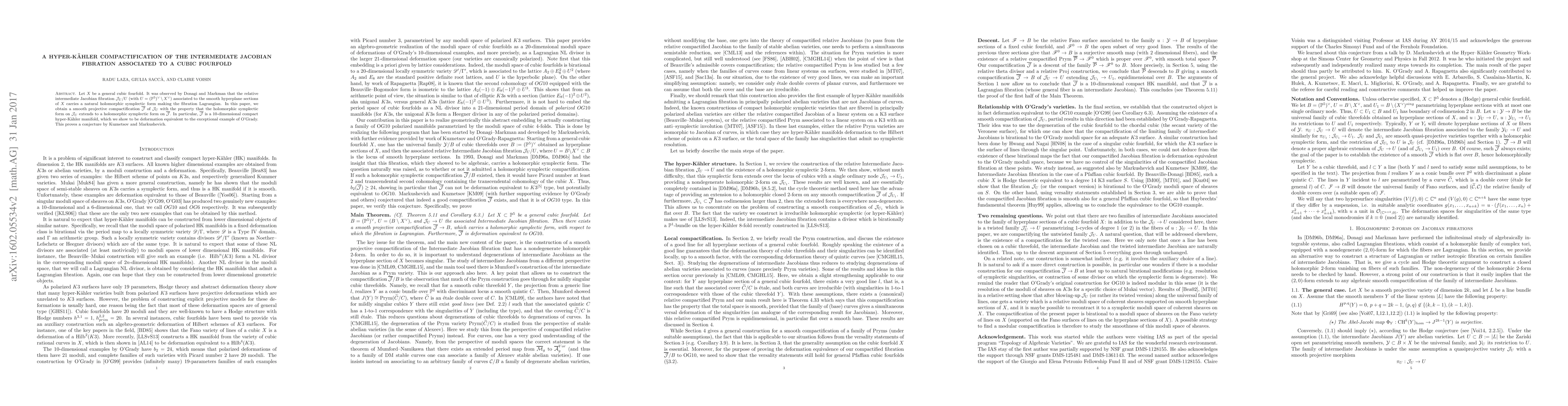 This paper constructs a smooth projective compactification of the relative intermediate Jacobian fibration of a general cubic fourfold, resulting in a ten-dimensional compact hyper-Kähler manifold. The authors demonstrate this manifold's deformation equivalence to O'Grady's exceptional example, thus proving Markushevich's conjecture.