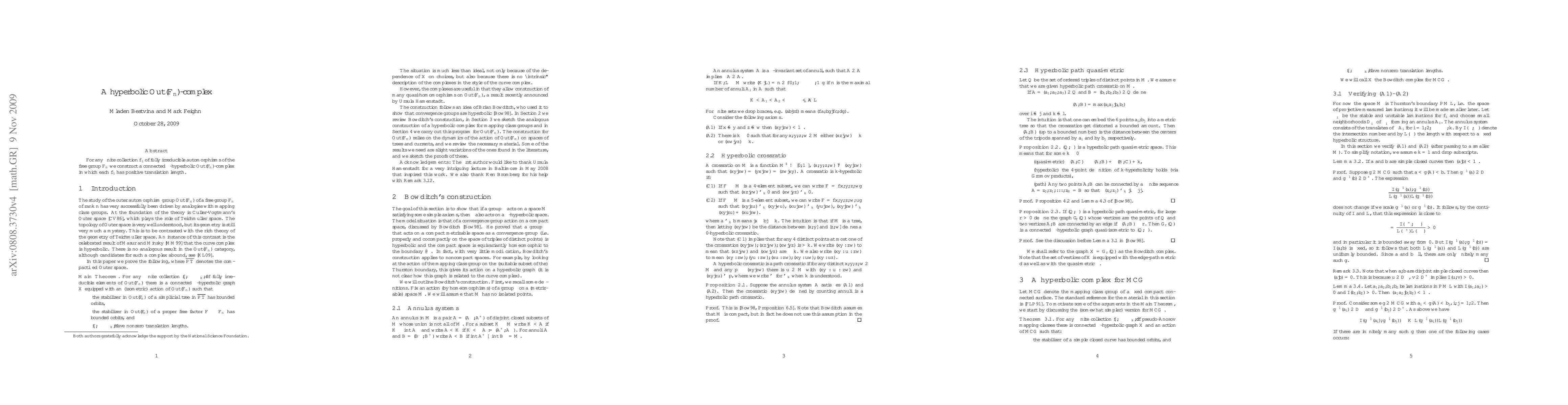 Summary: The paper constructs a hyperbolic complex for the outer automorphism group of a free group $F_n$ where each fully irreducible automorphism has a positive translation length, ensuring the complex is connected and $\delta$-hyperbolic.