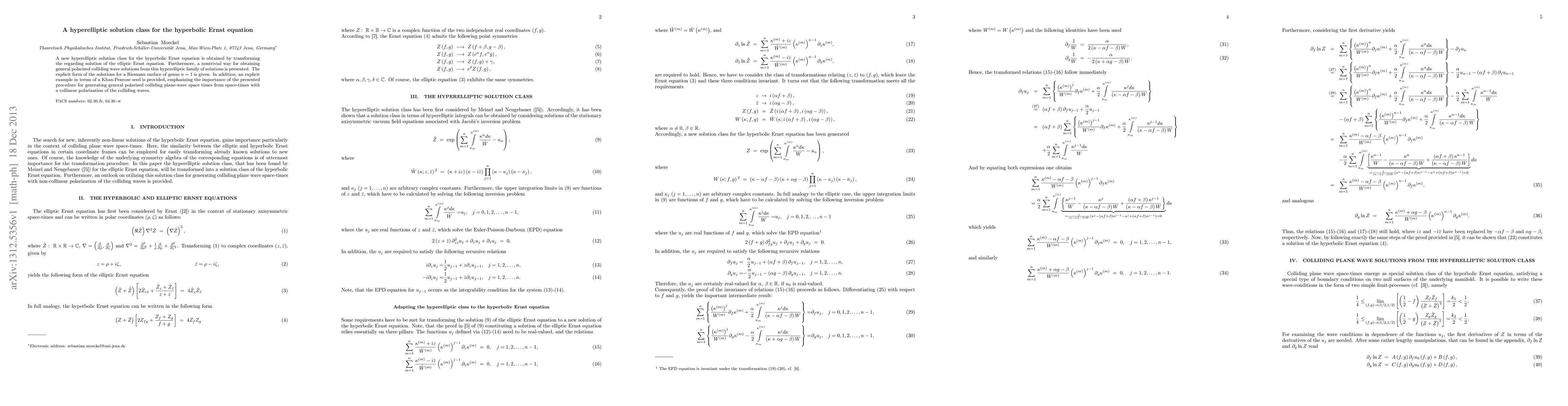 This paper introduces a new hyperelliptic solution class for the hyperbolic Ernst equation derived from the elliptic Ernst equation. It also presents a method for generating general polarized colliding wave solutions from this hyperelliptic family, providing explicit solutions for a Riemann surface of genus 1 and an example using a Khan-Penrose seed.